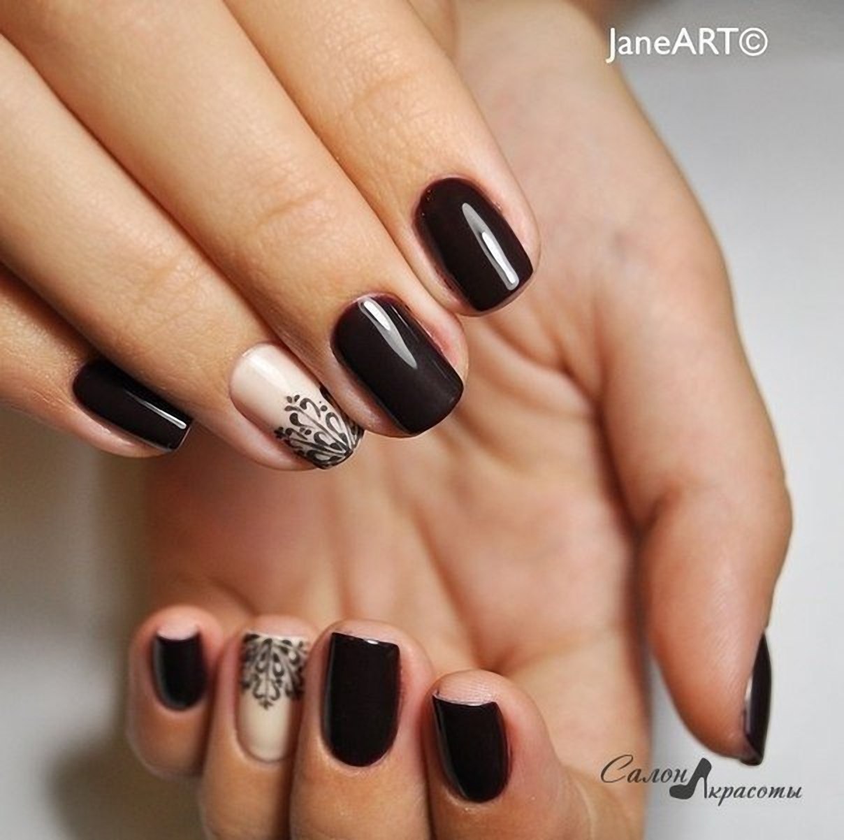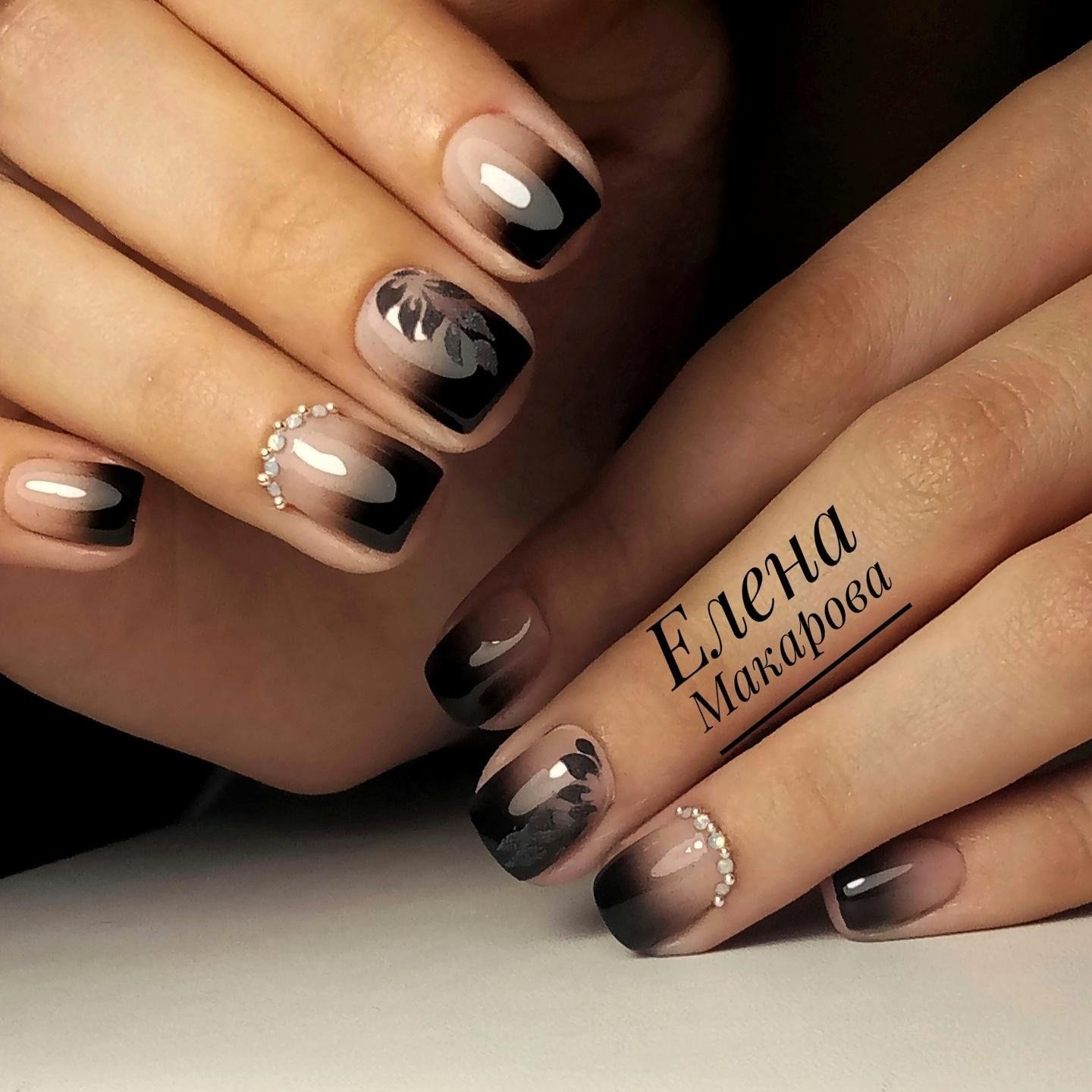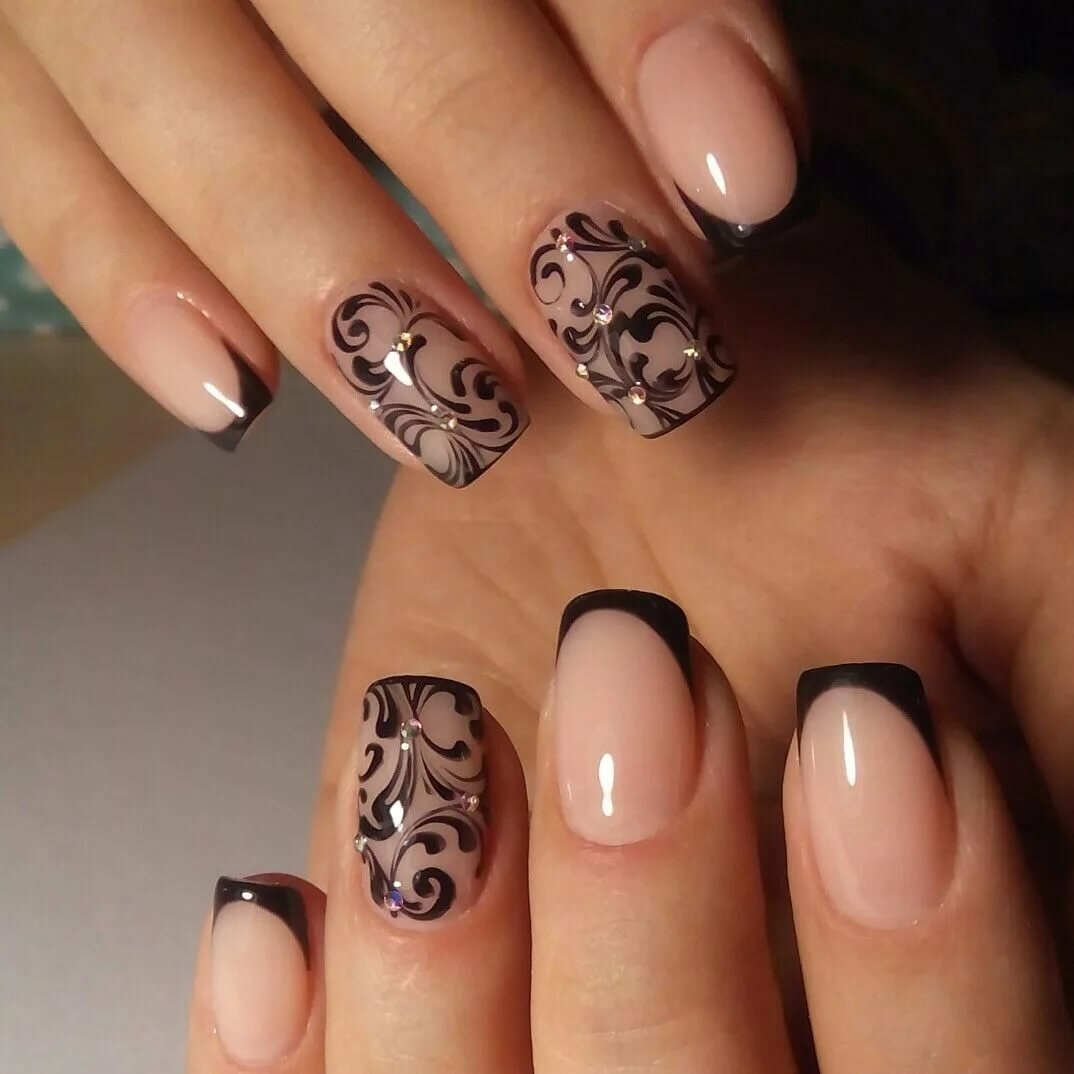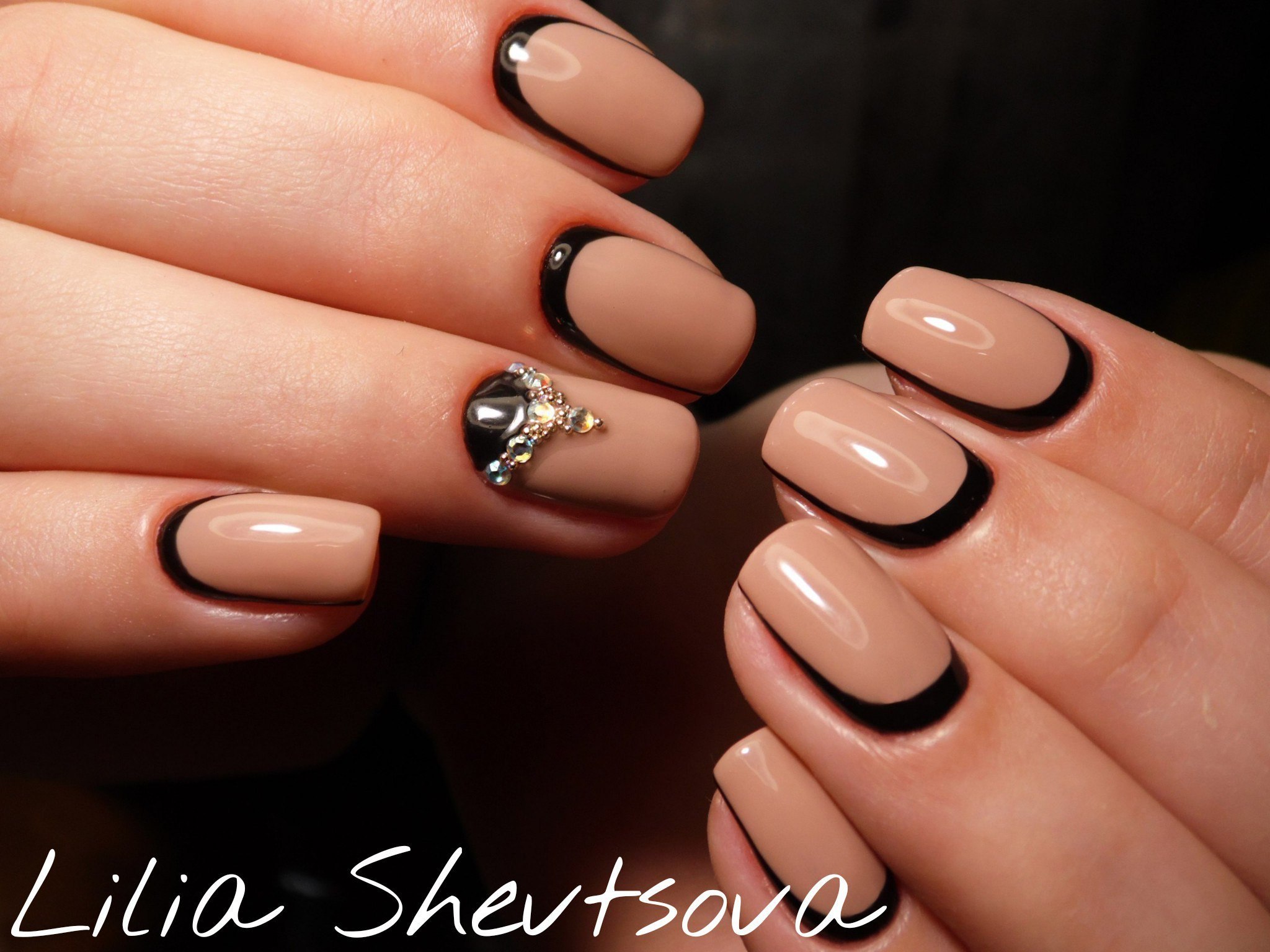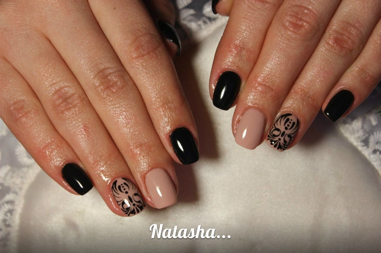 Маникюр бежевый с черным