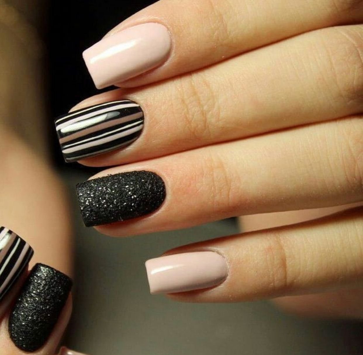 Темный маникюр с полосками