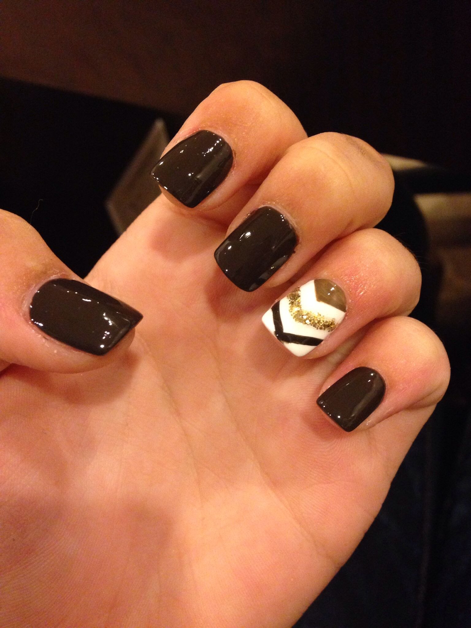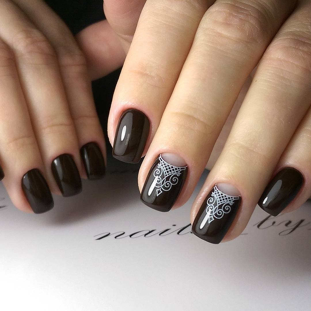 Маникюр на короткие ногти коричневый с черным