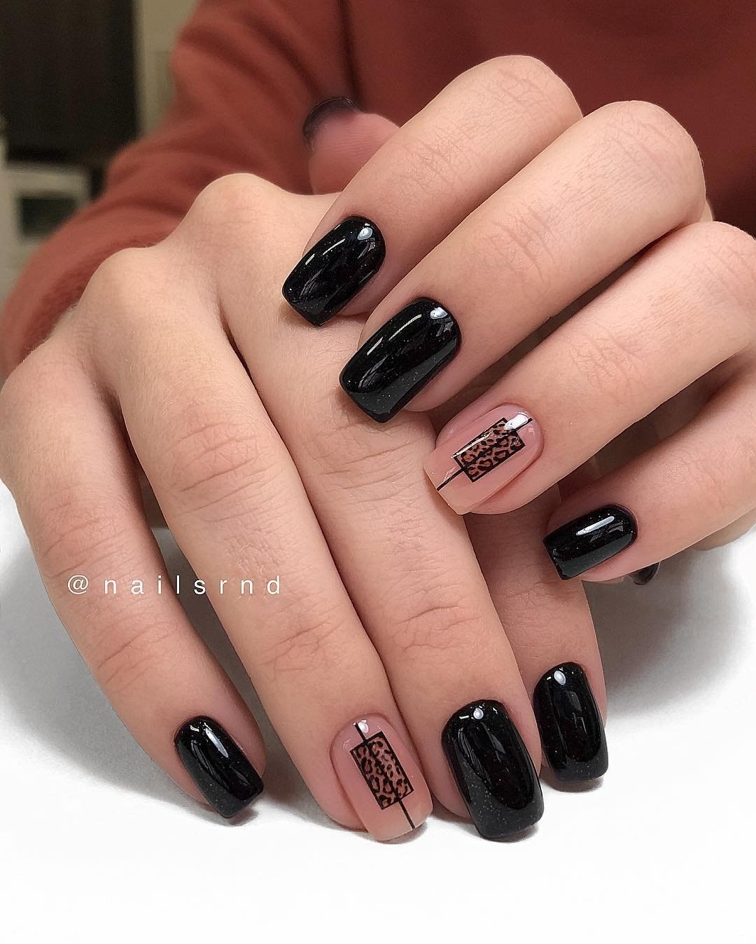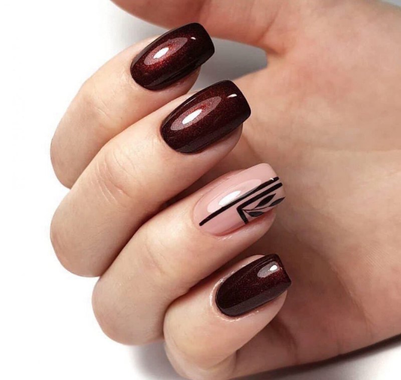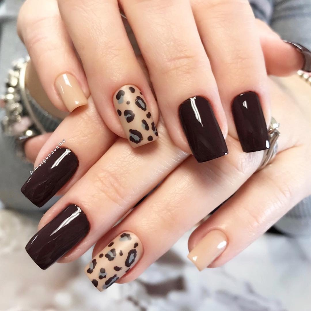 Маникюр коричневый на квадратные ногти с черным