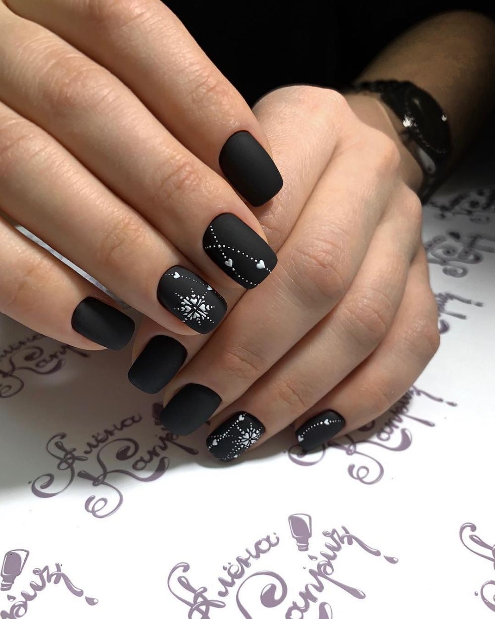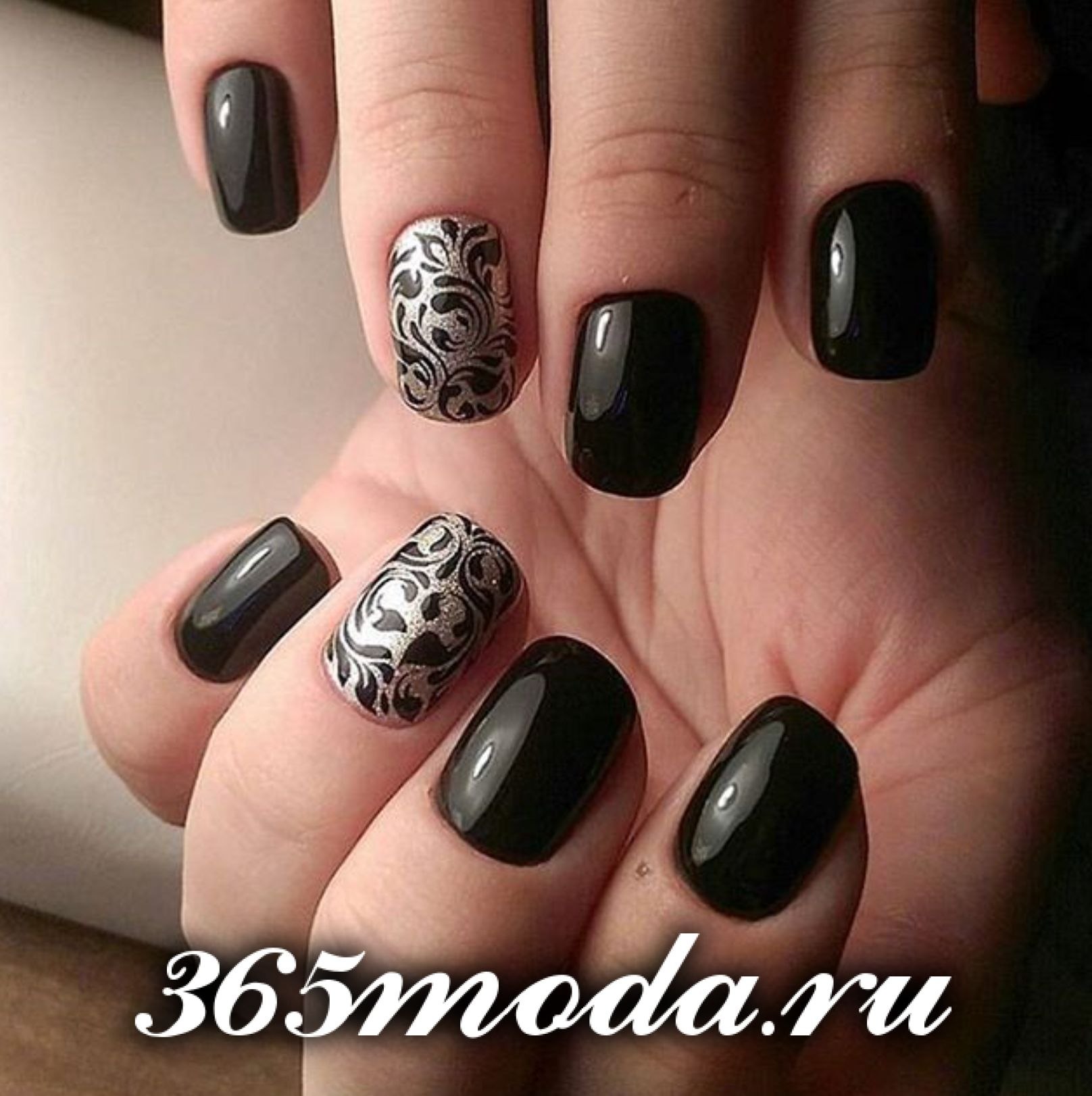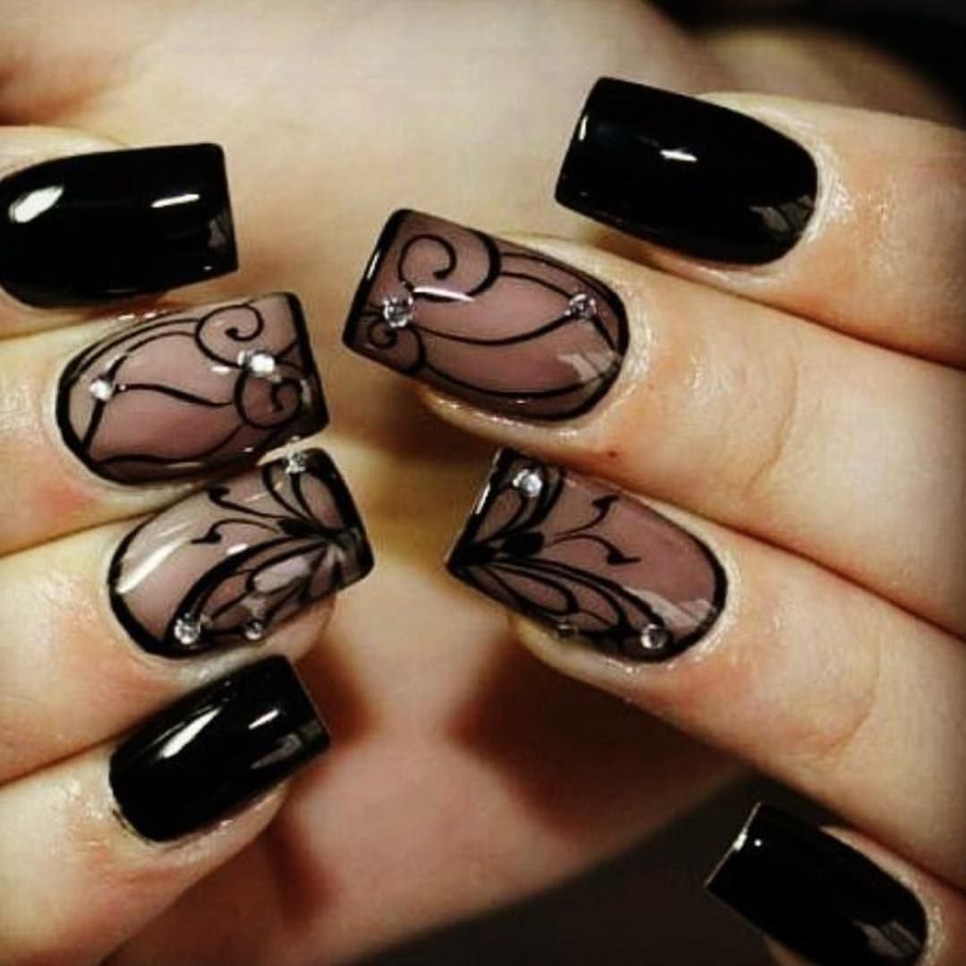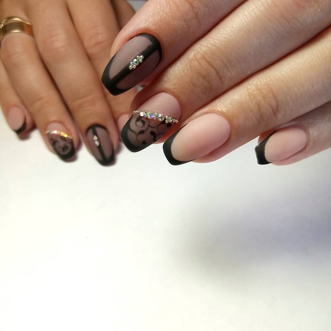 Маникюр с черным кружевом