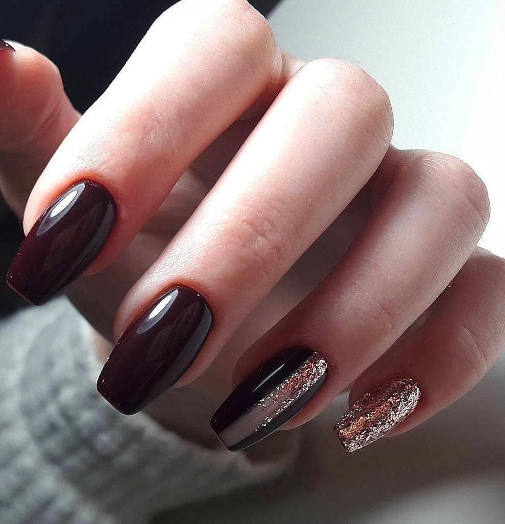 Темно-коричневый маникюр