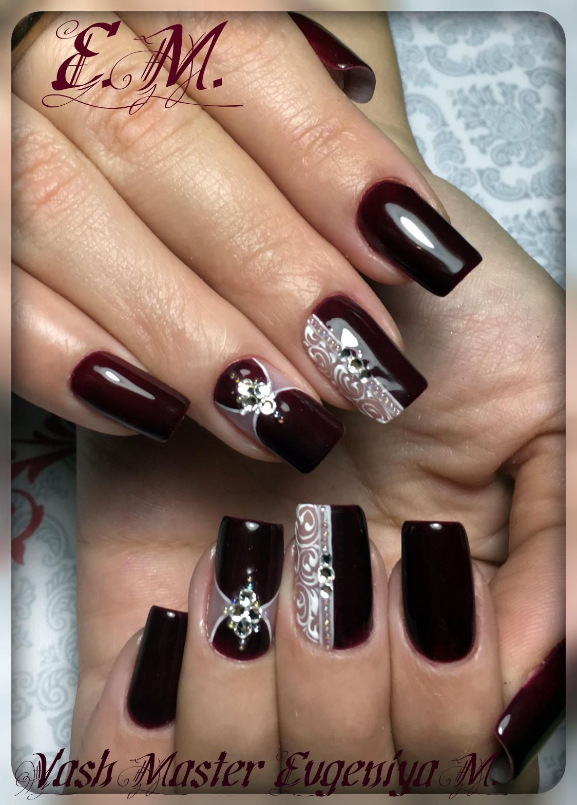 Бордовый маникюр квадрат