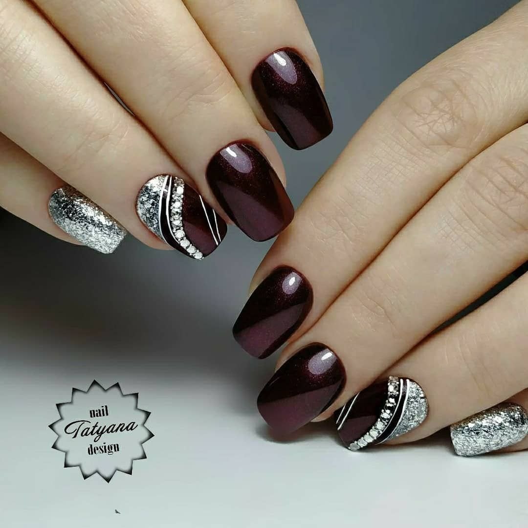 Черно бордовые ногти
