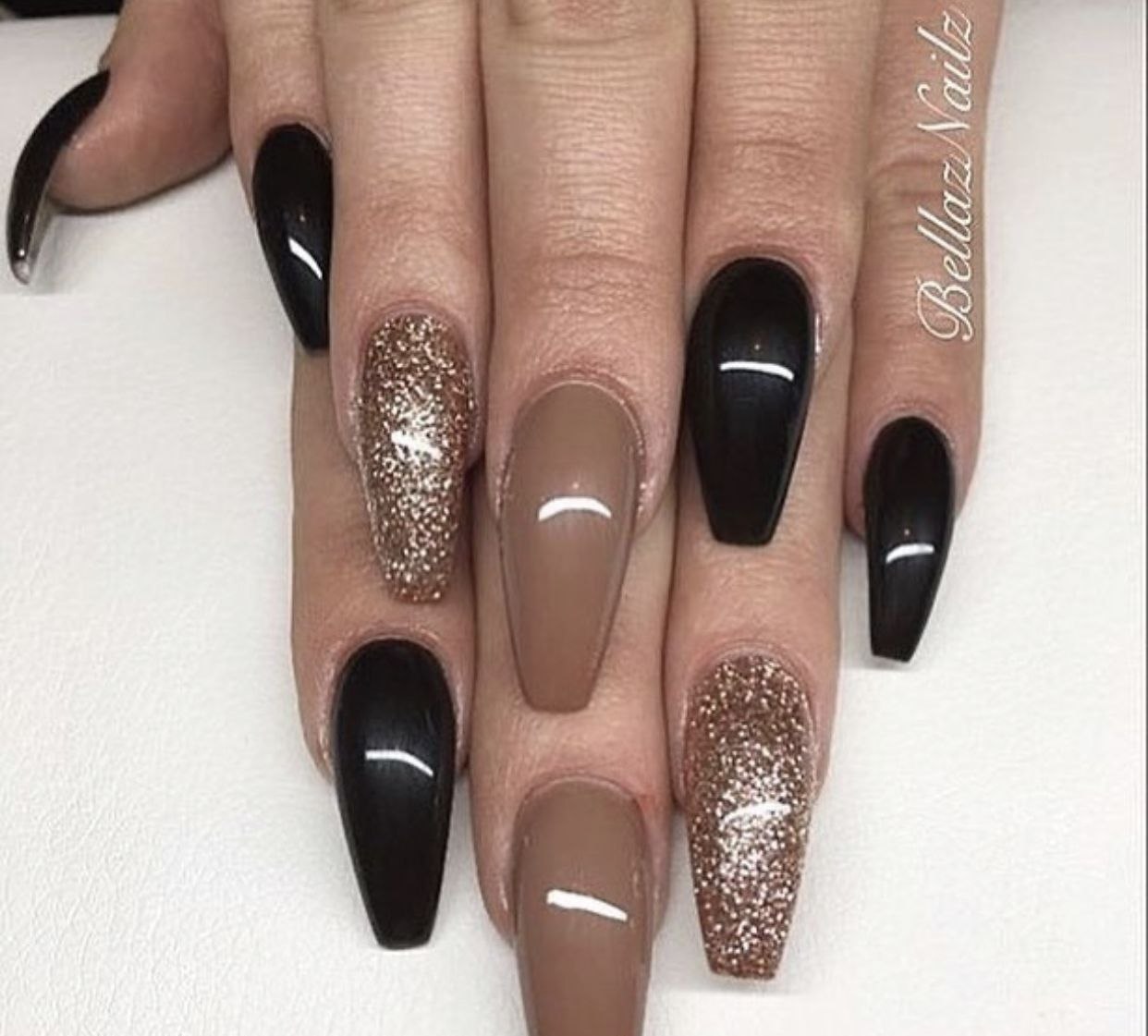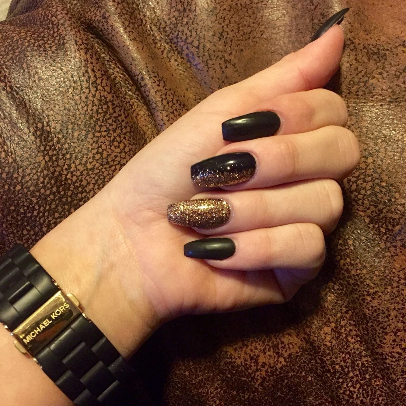 Коричневый с черным квадратные ногти