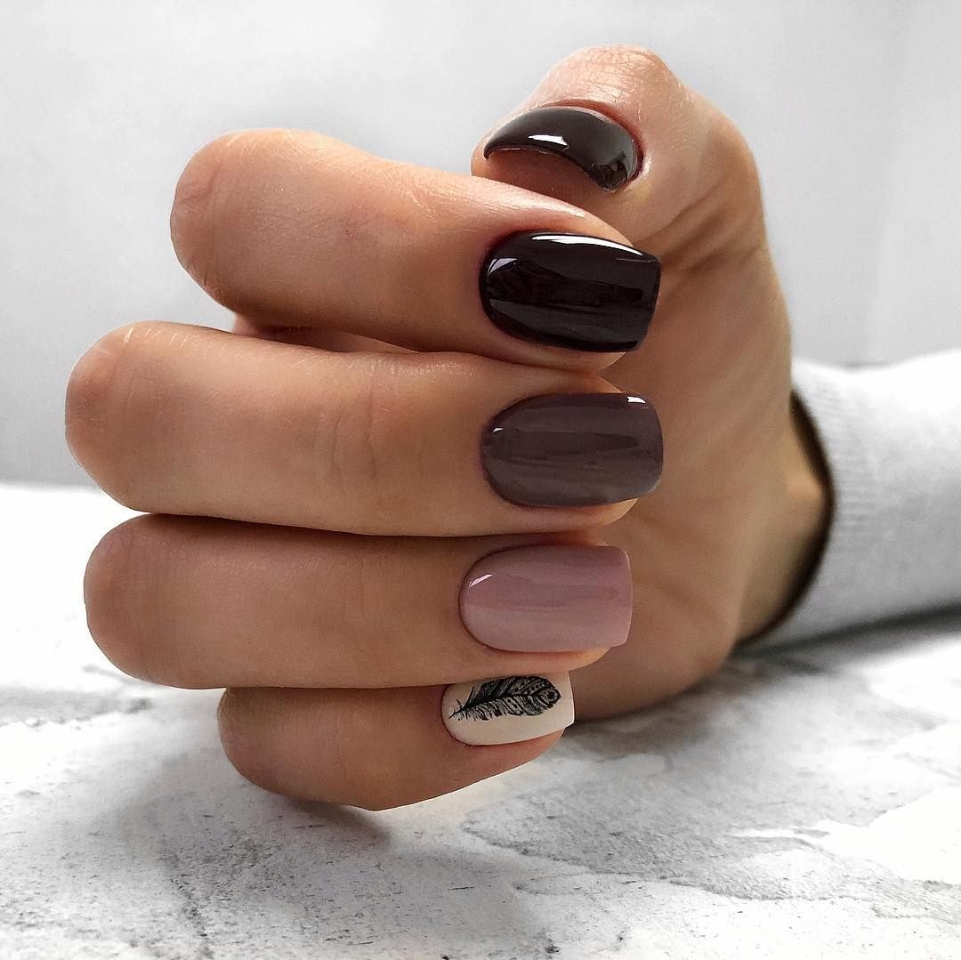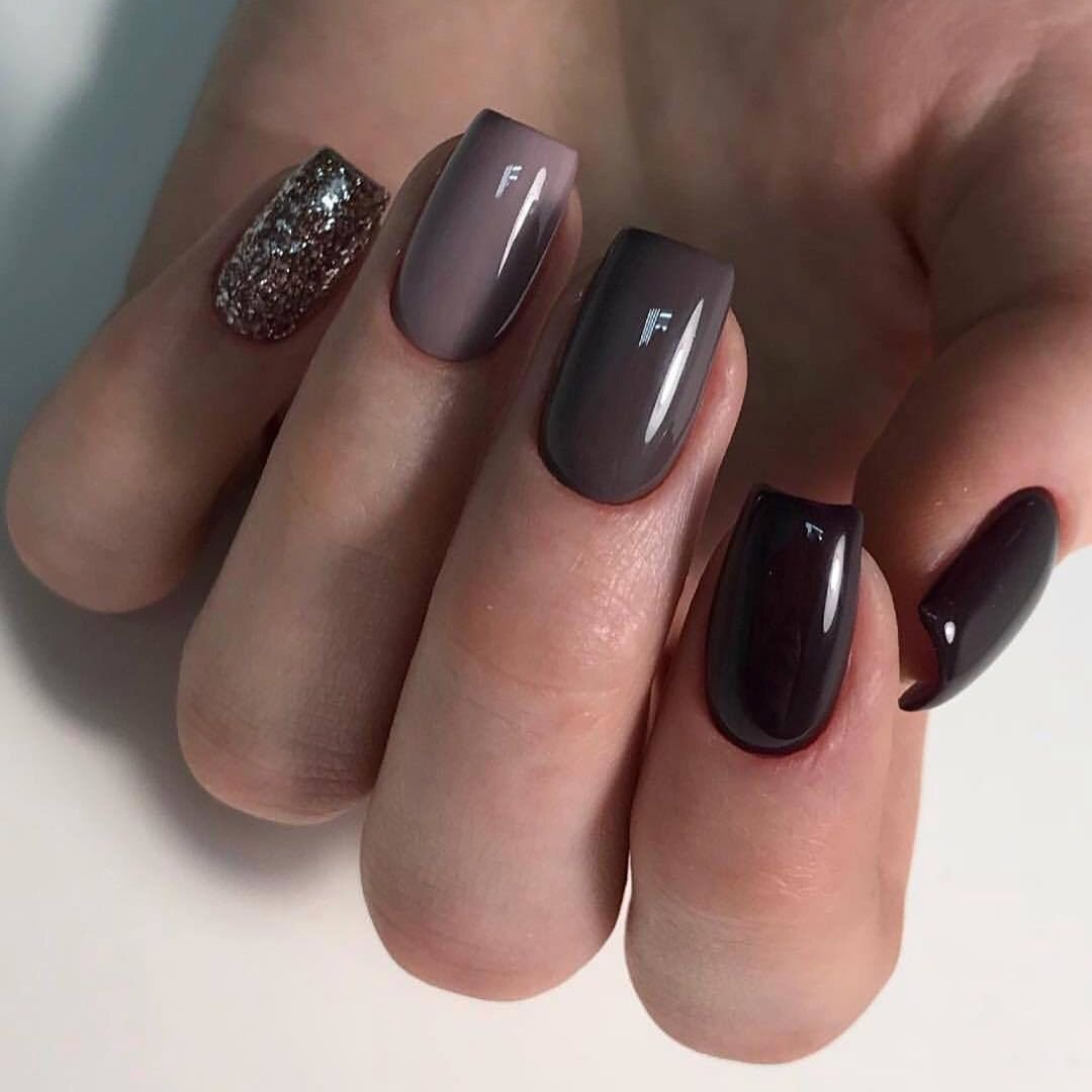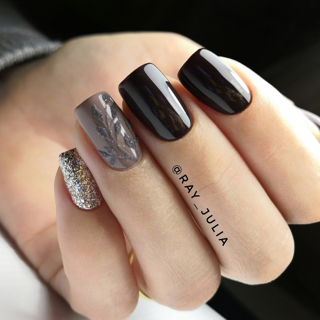 Черно коричневый маникюр