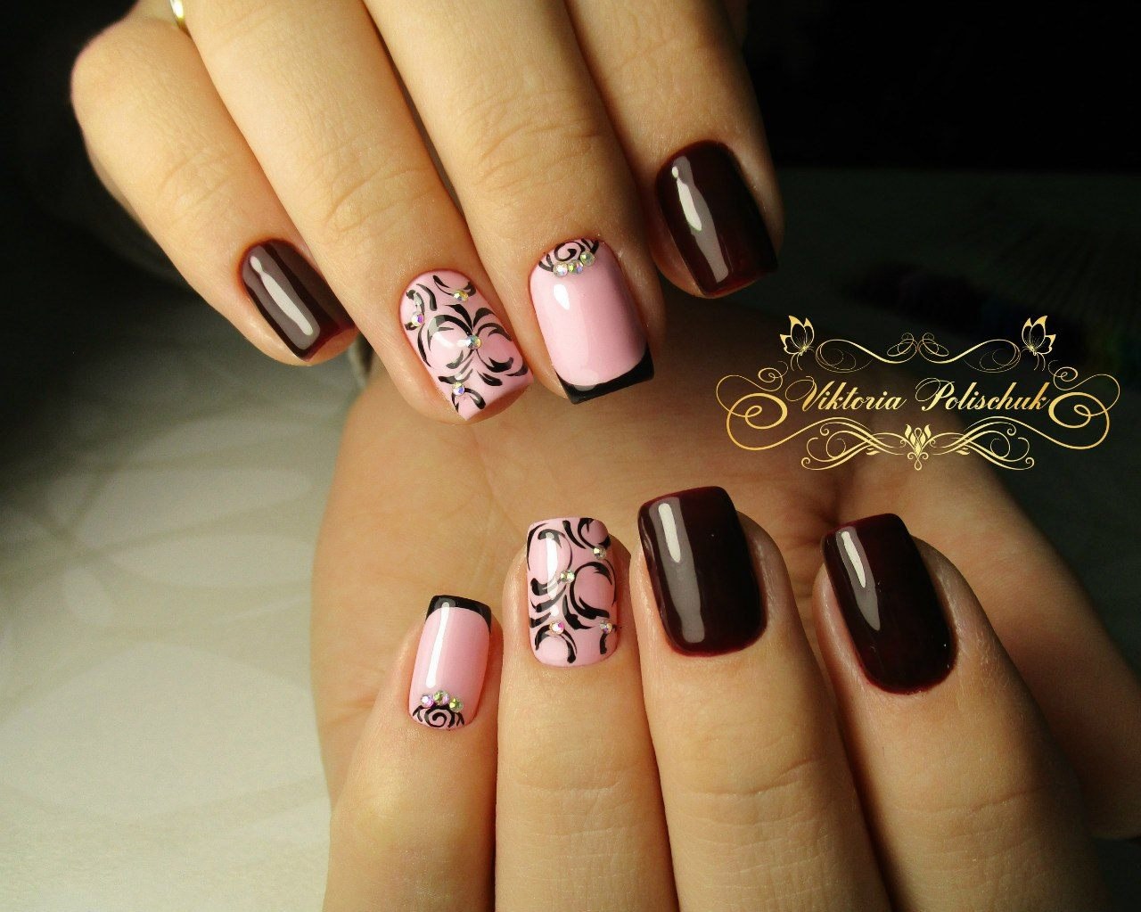 Маникюр в коричнево розовых тонах