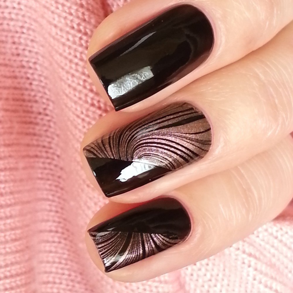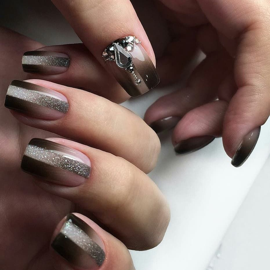 Маникюр в черно коричневом цвете