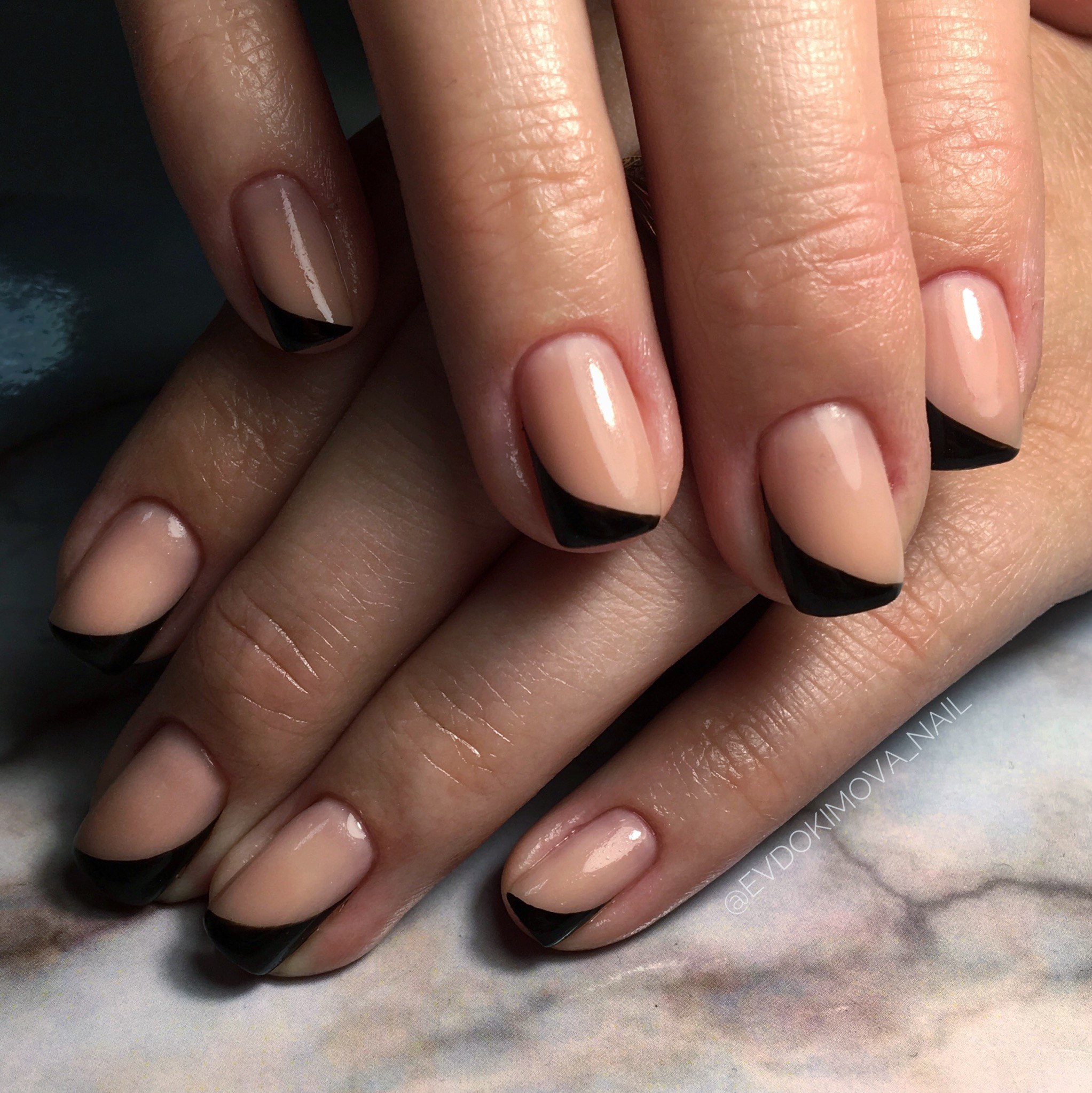 Черно бежевый маникюр на короткие ногти