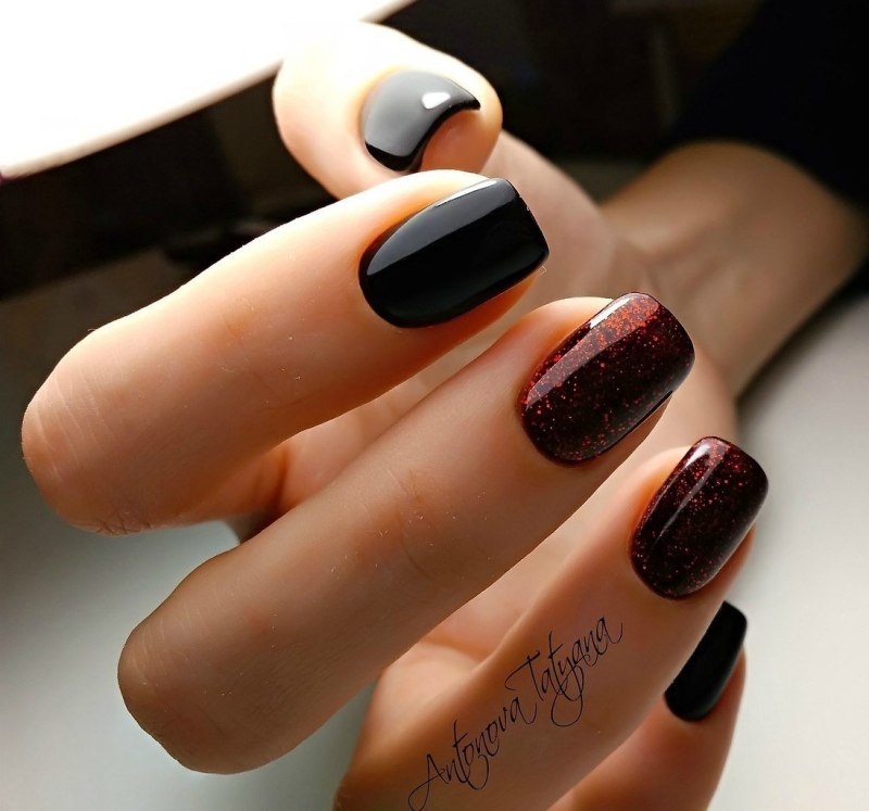 Маникюр на короткие ногти в темных тонах