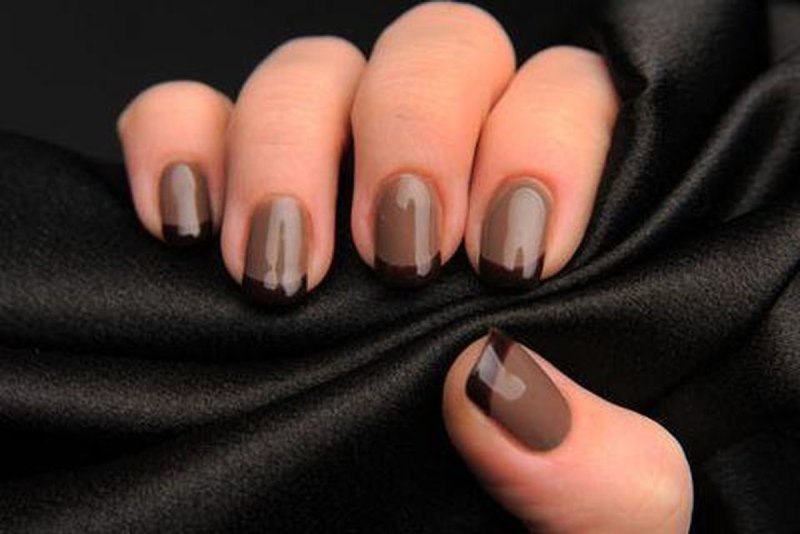 Коричневый френч на ногтях