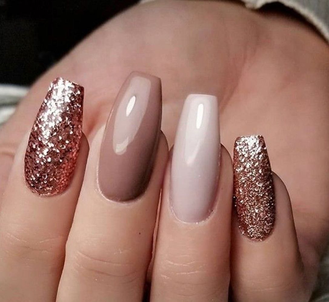 Маникюр бежевый с блестками