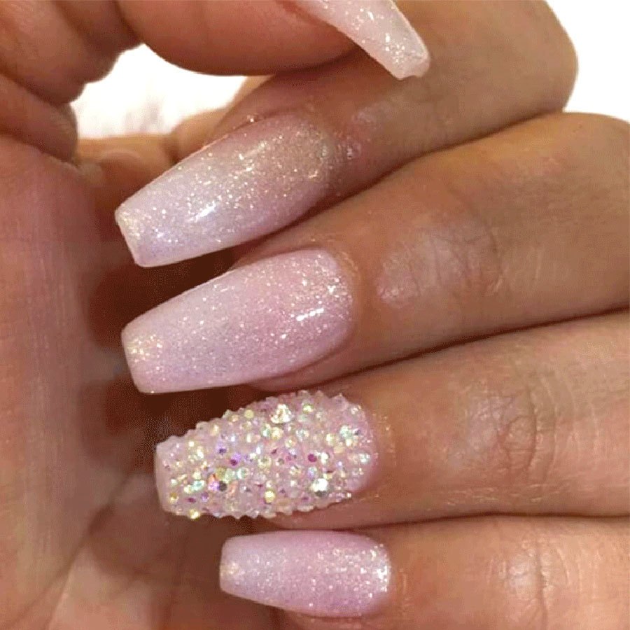 Ногти розовые с блестками