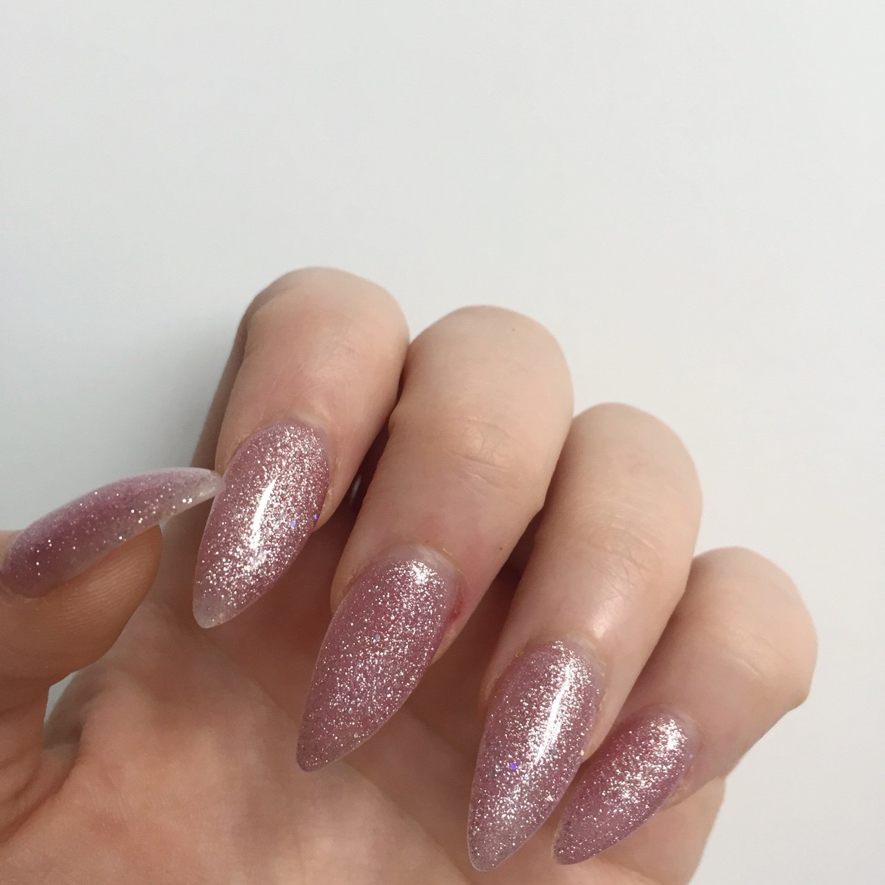 Розовые блестящие ногти