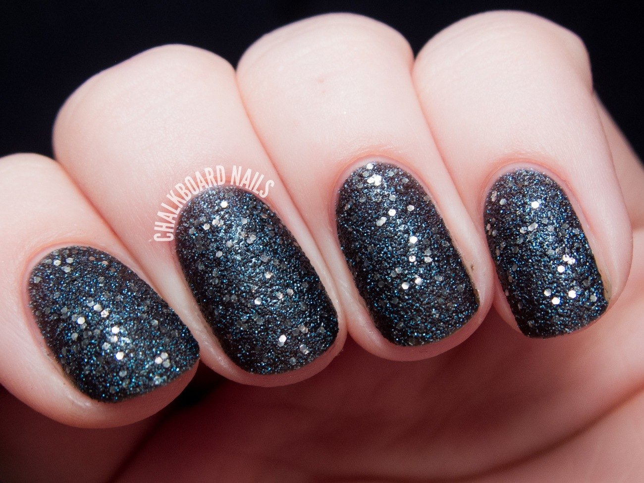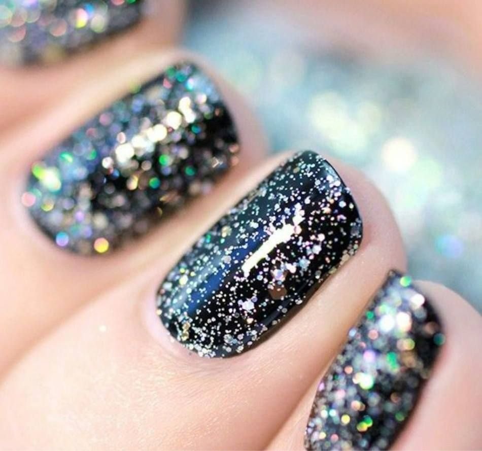 Черные ногти с блестками