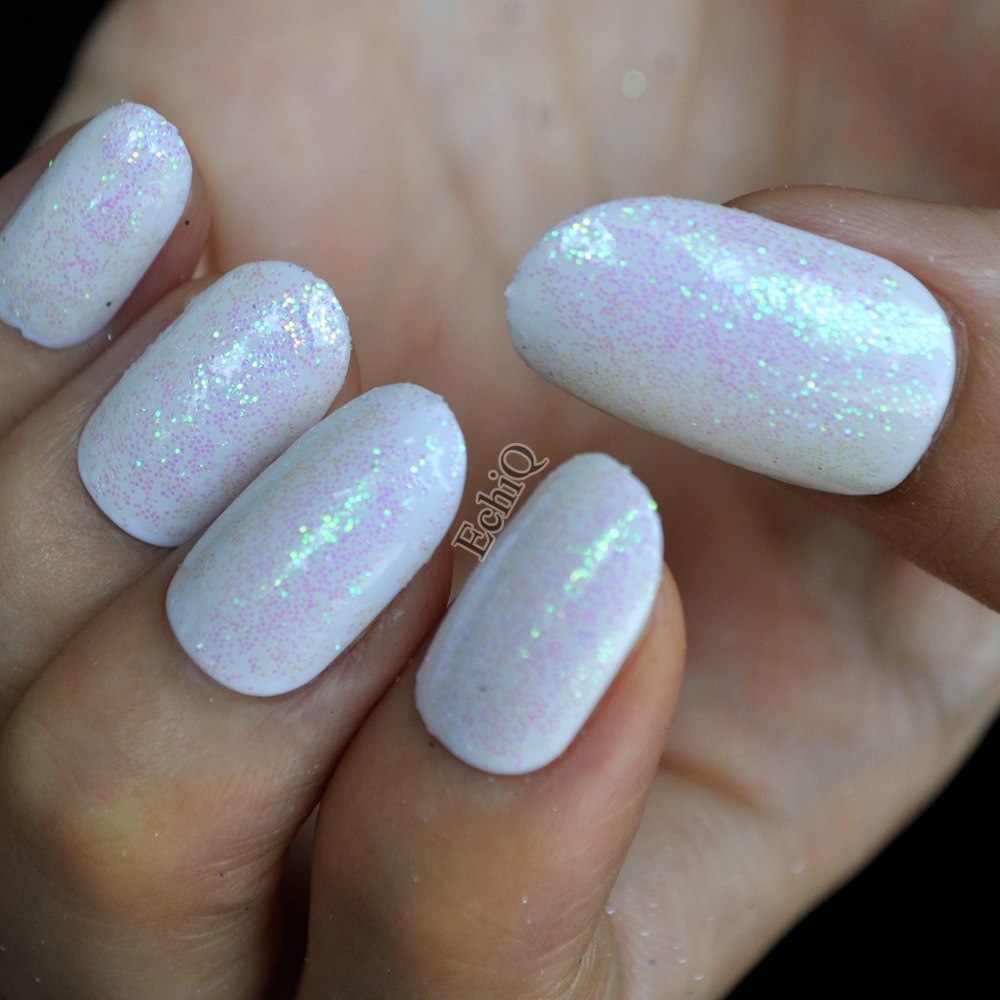 Белый маникюр с блестками