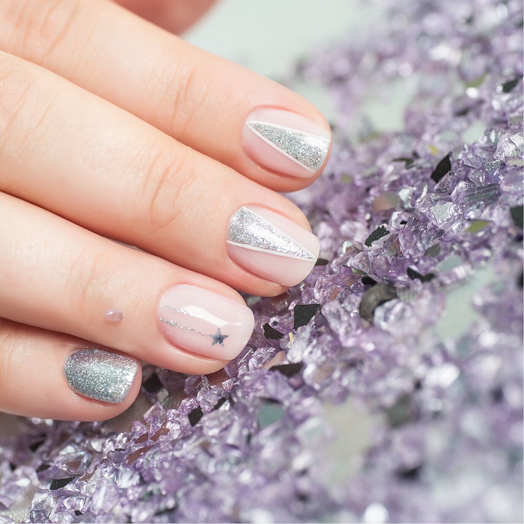 Маникюр с блёстками на короткие ногти