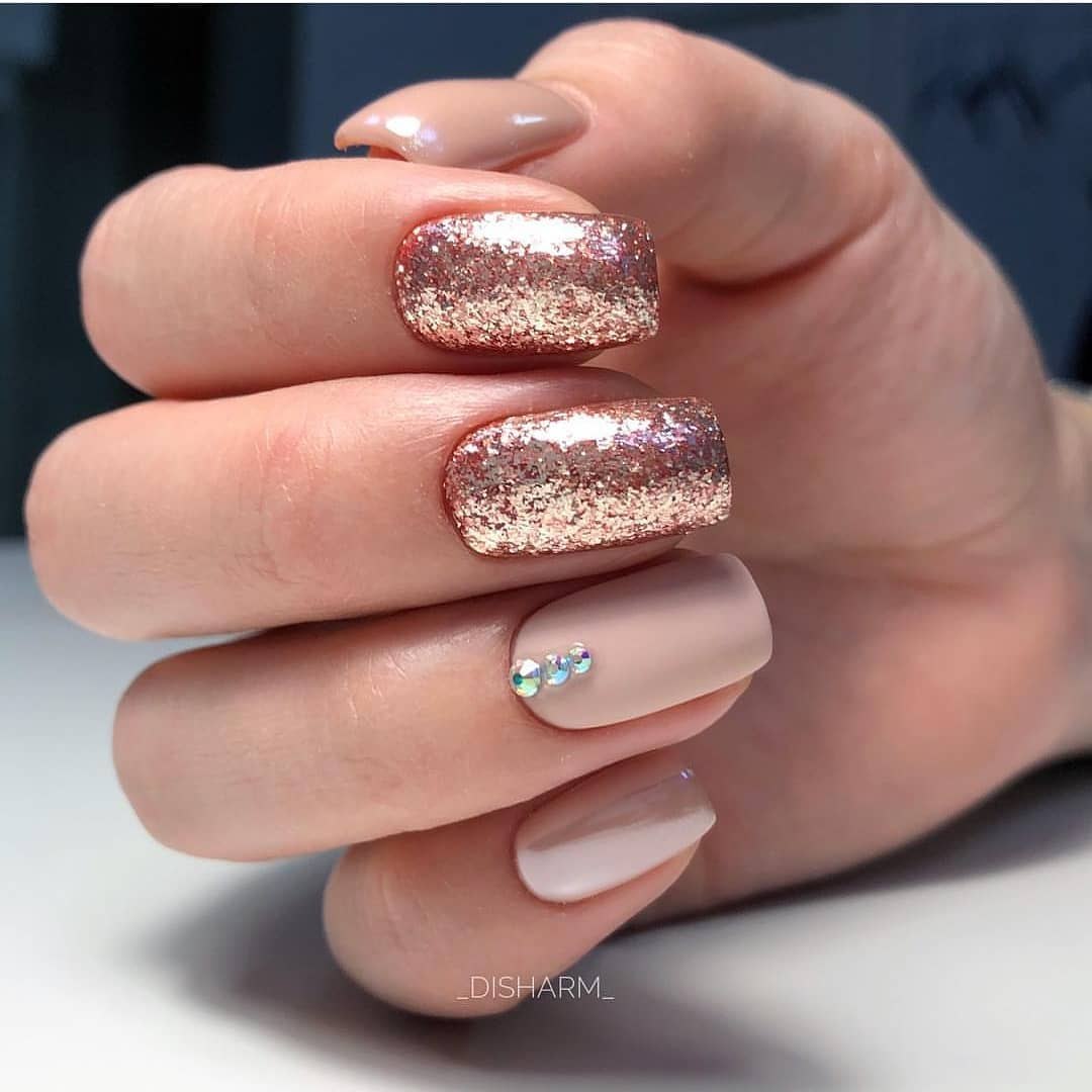 Нюдовый маникюр 2022 с блестками