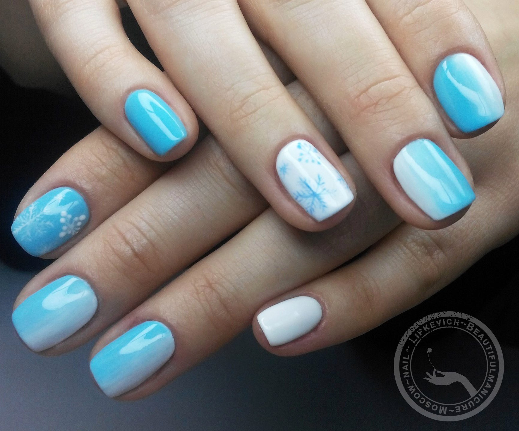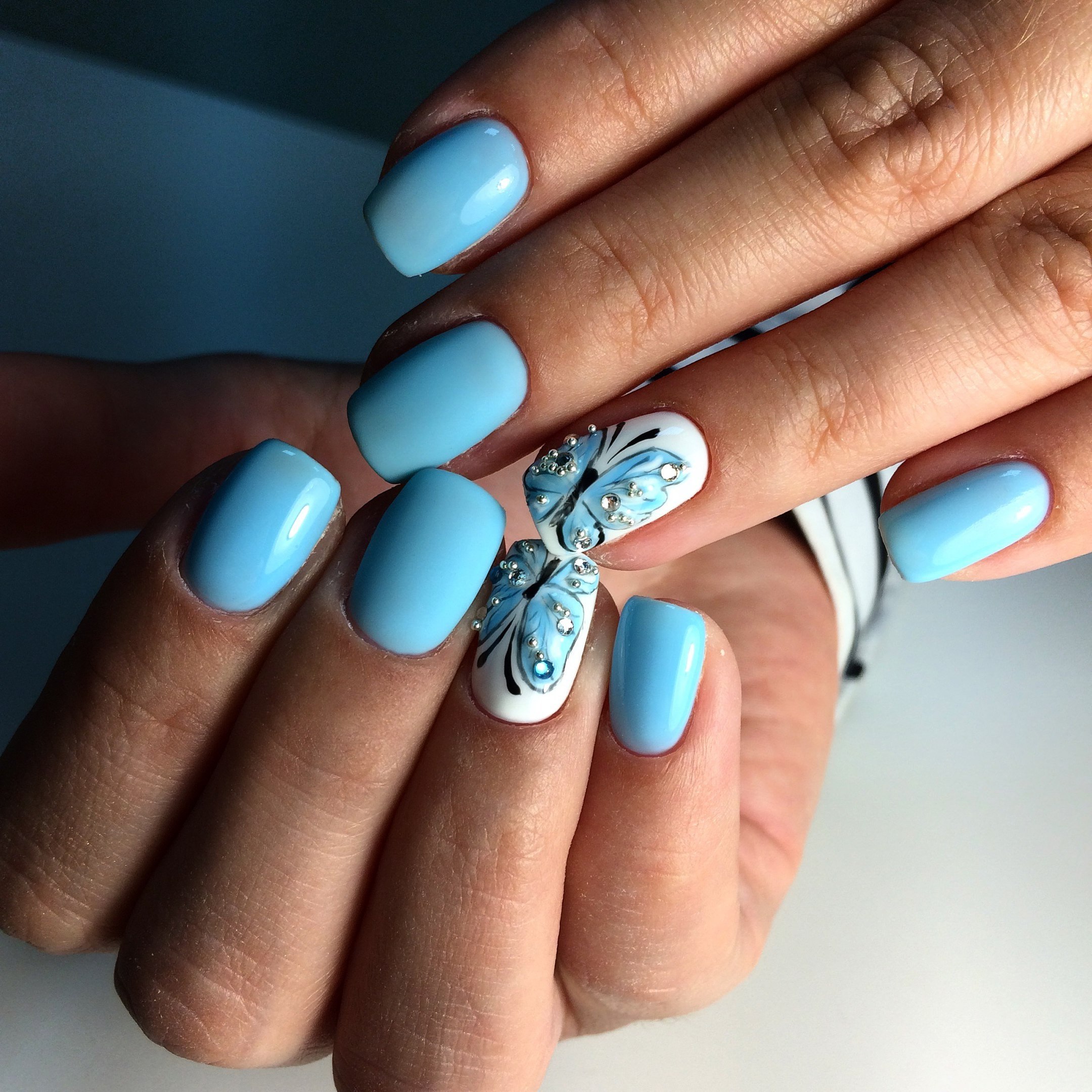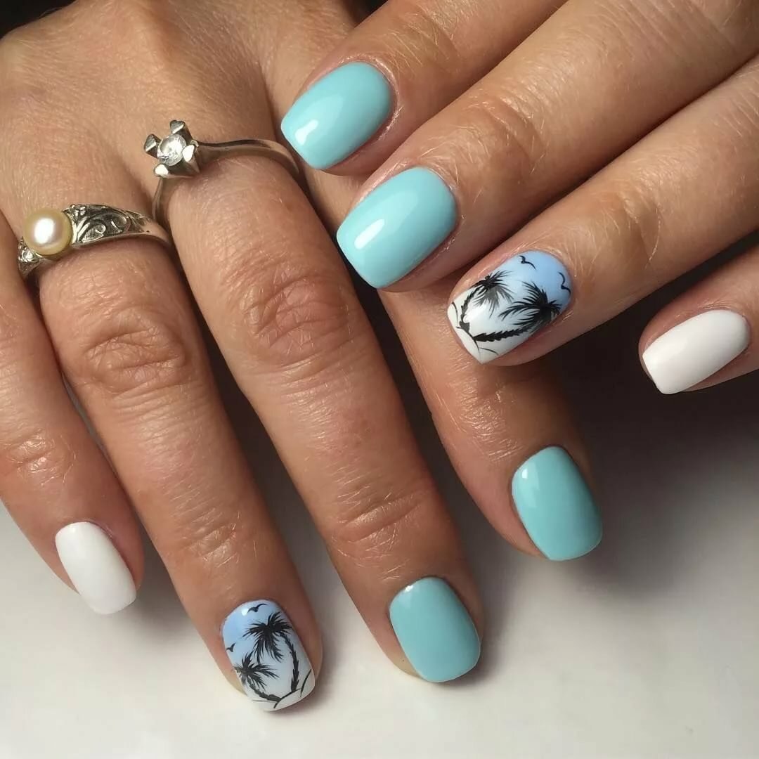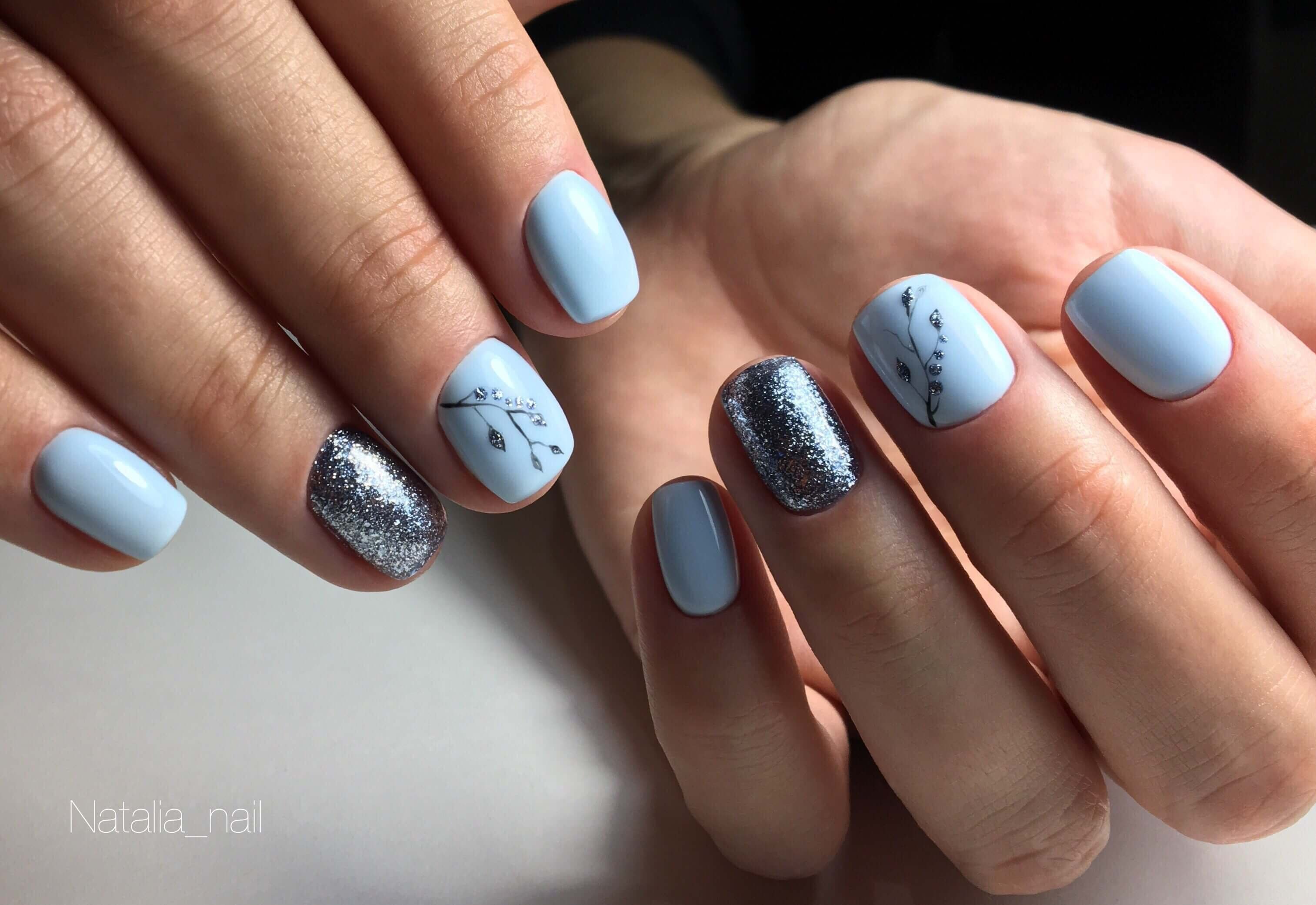 Маникюр в голубых оттенках