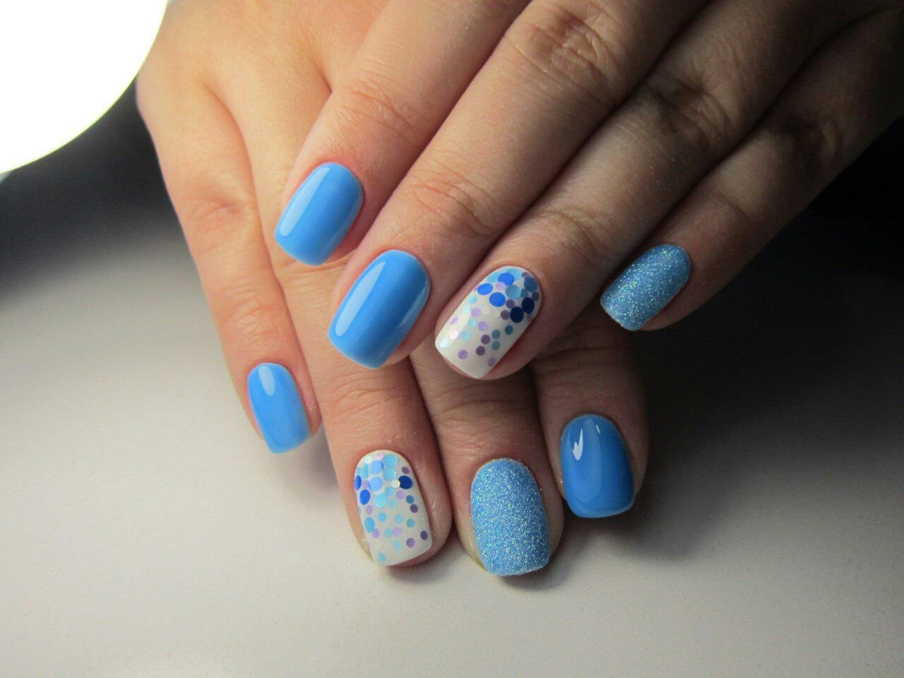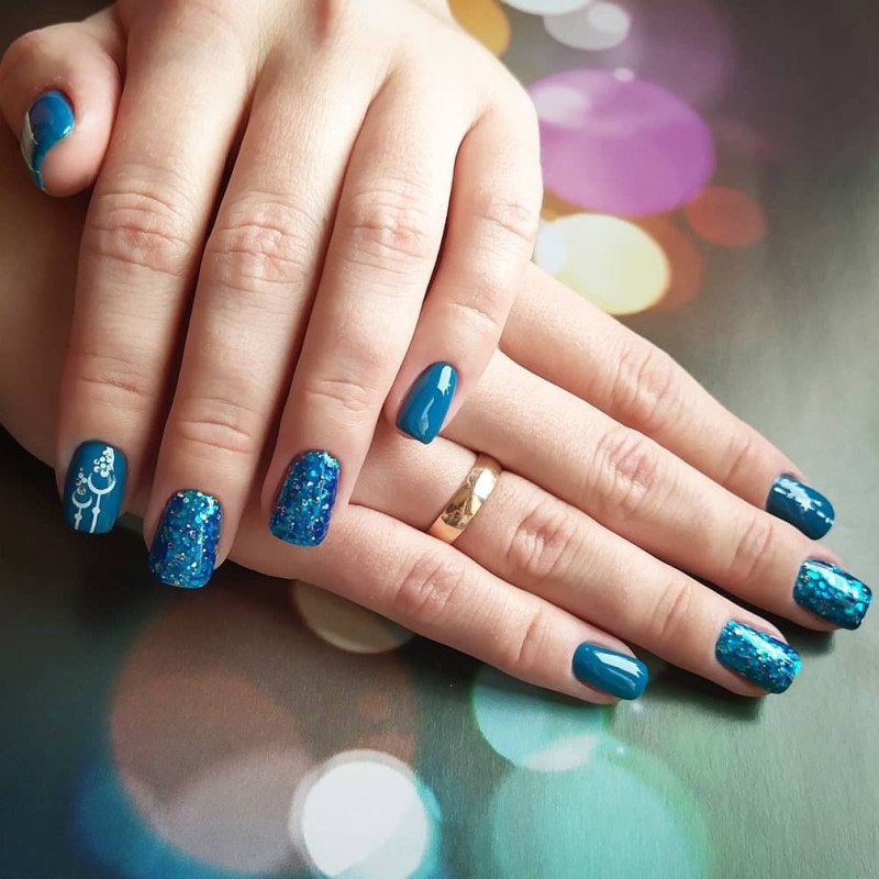 Маникюр в голубых тонах