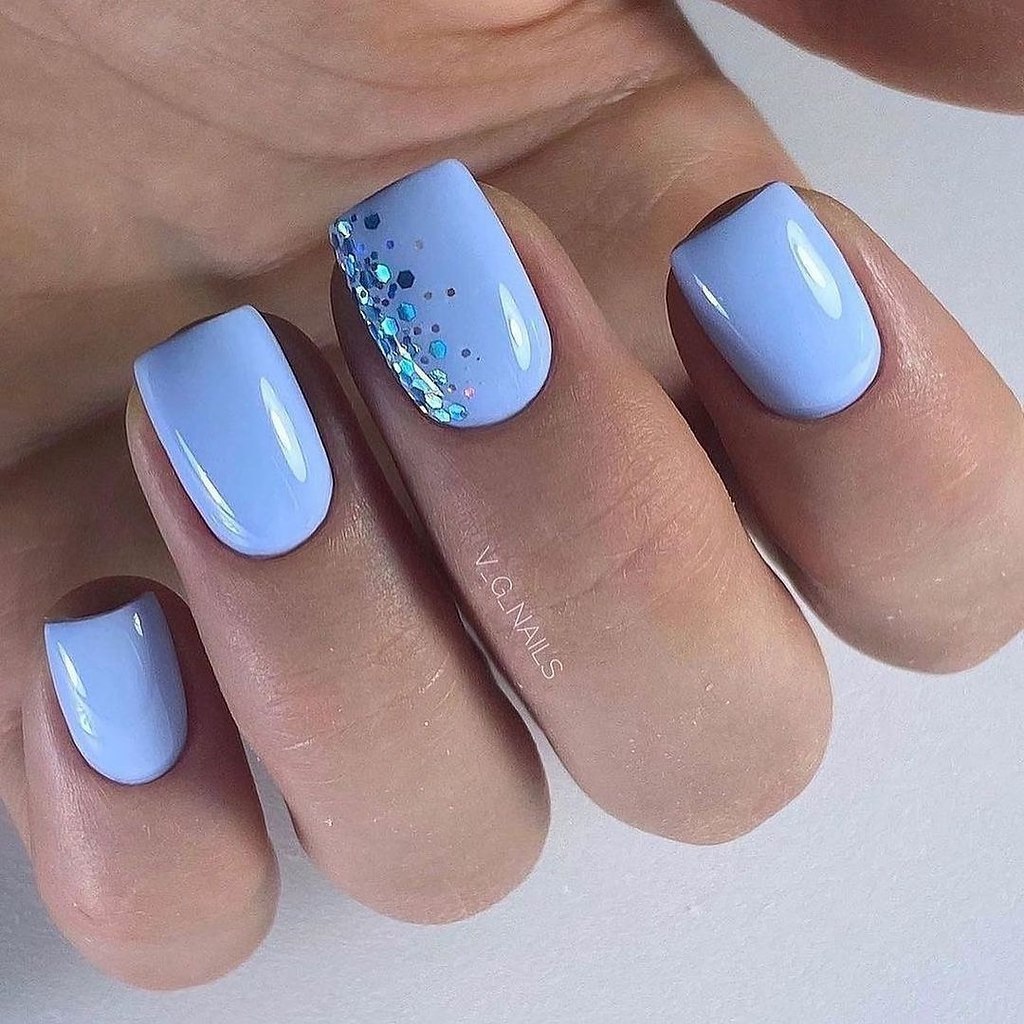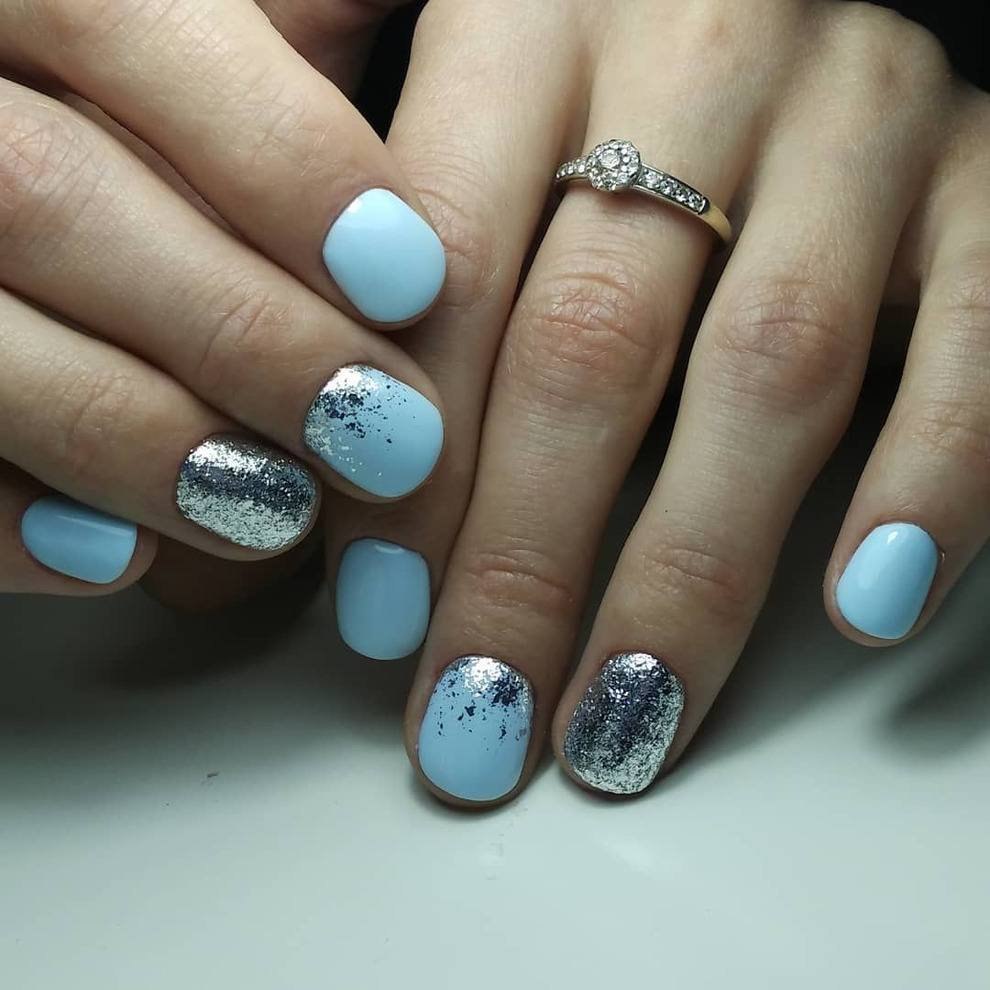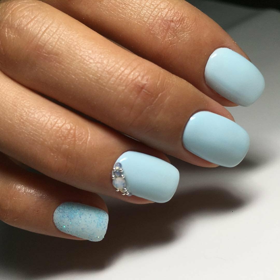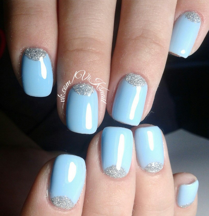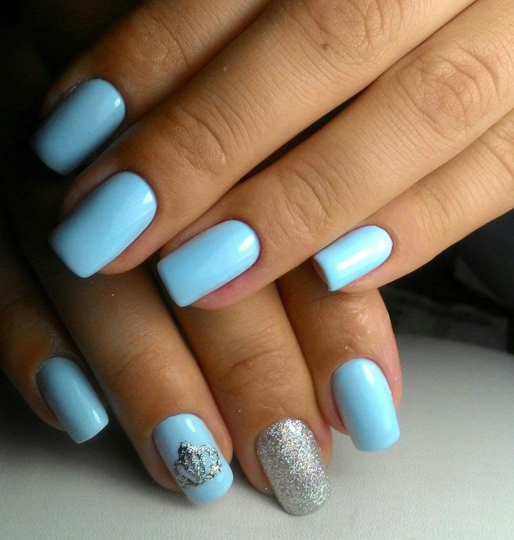 Маникюр на короткие ногти голубого цвета