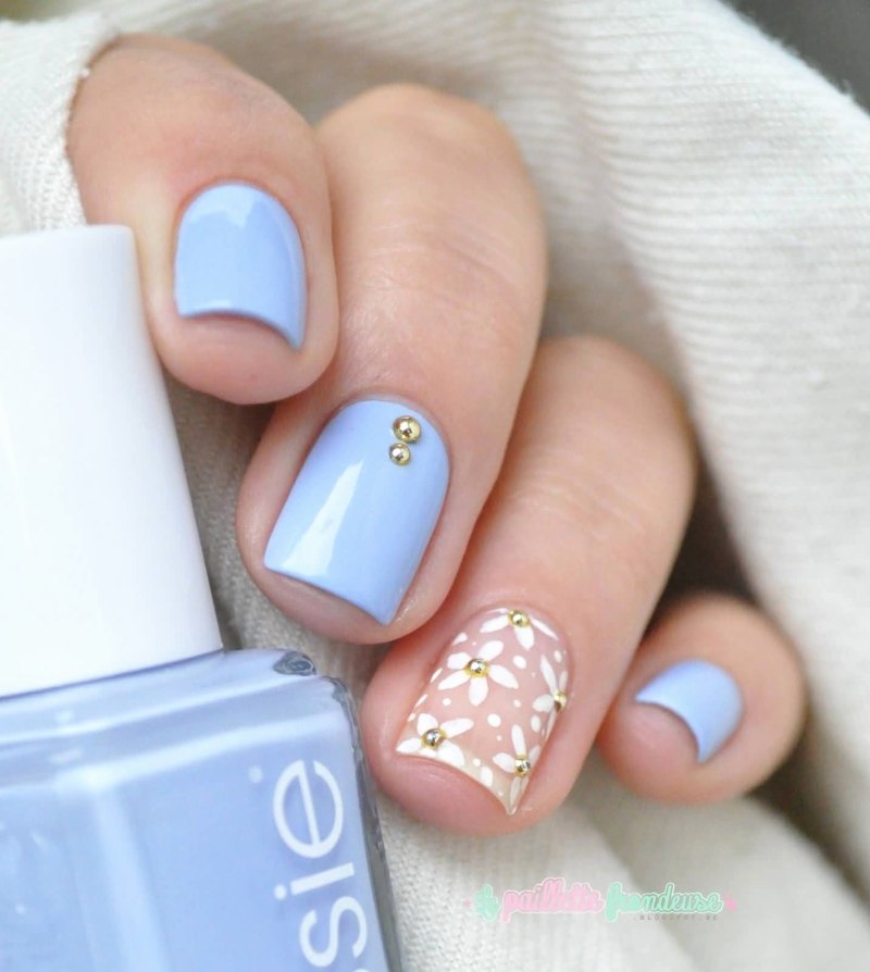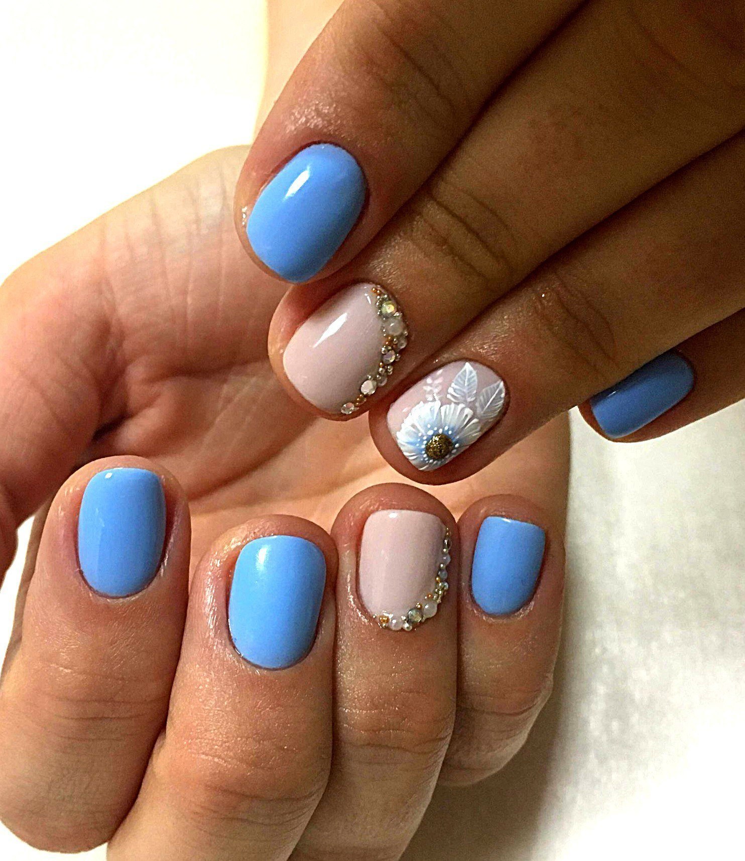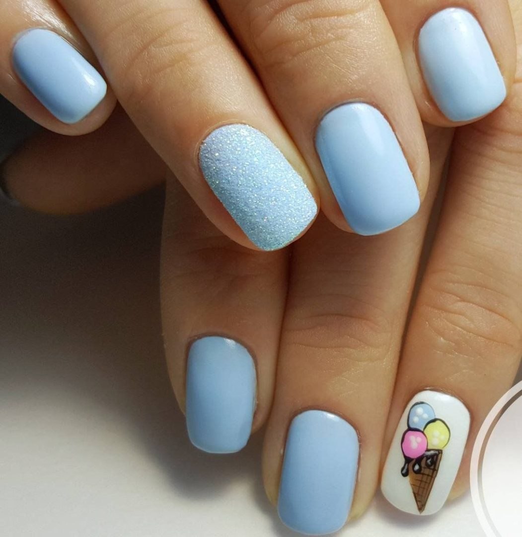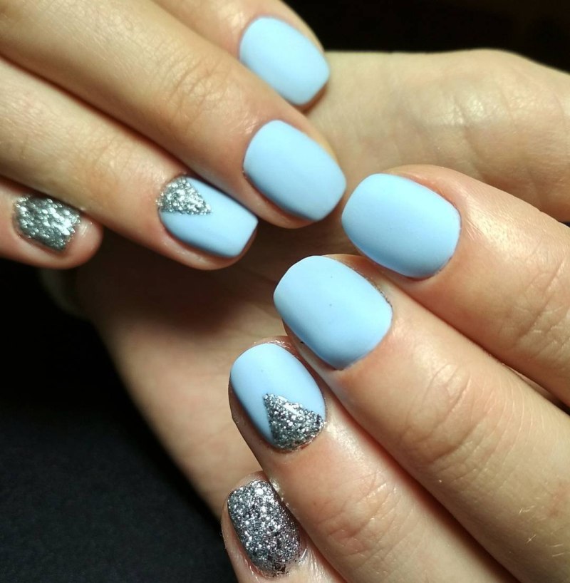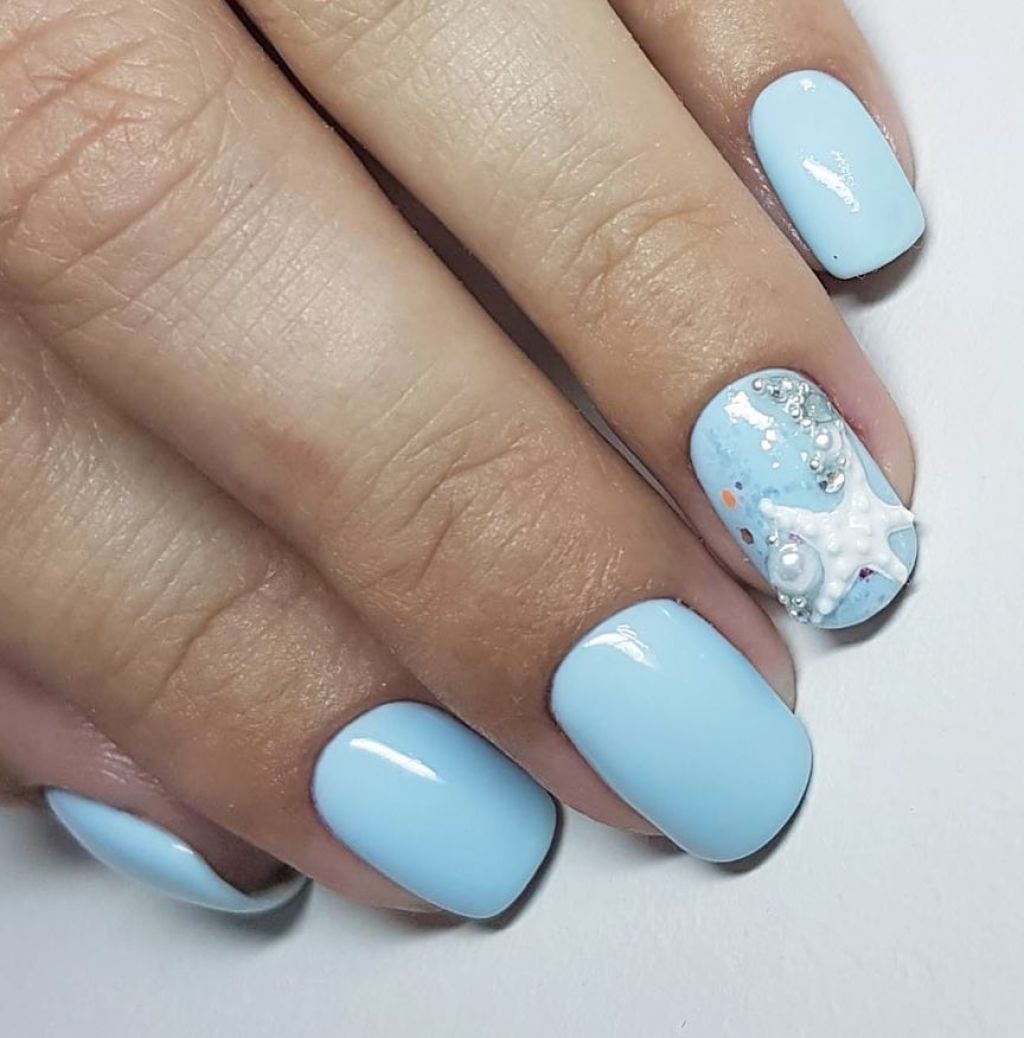 Маникюр на короткие ногти голубого цвета