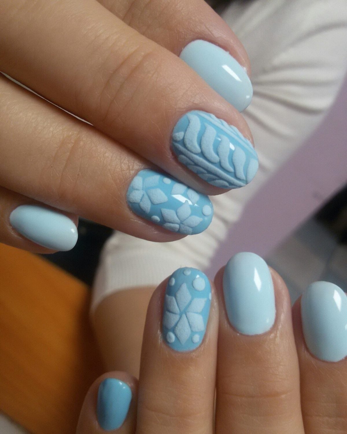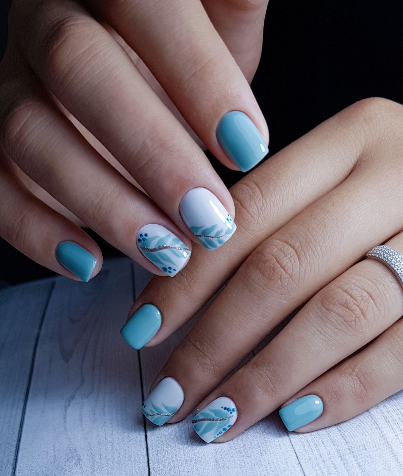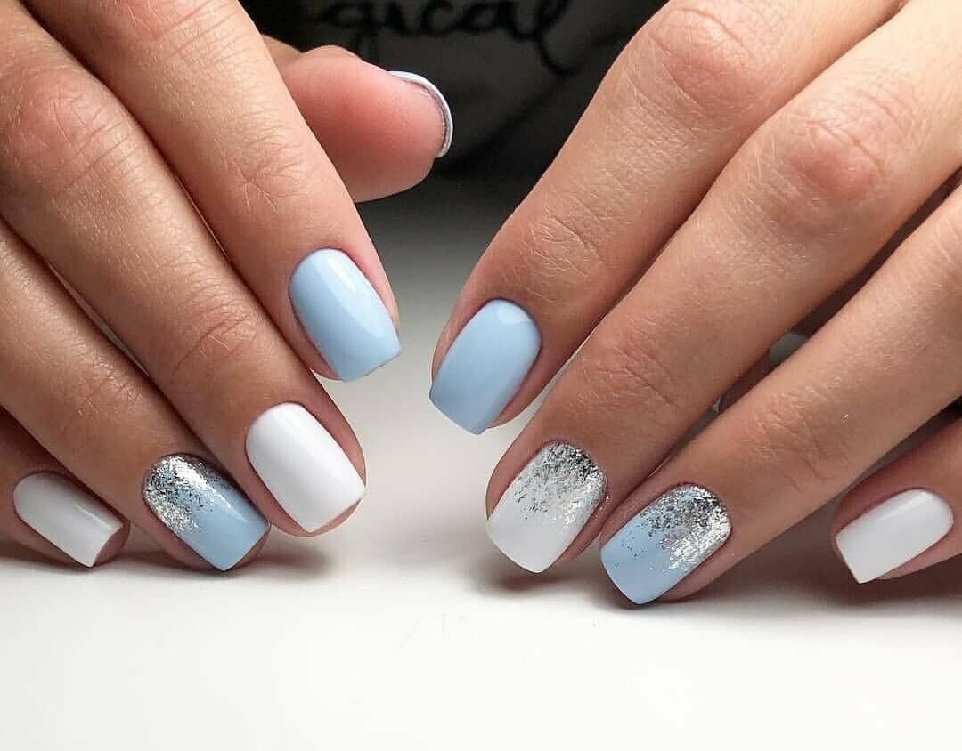 Маникюр голубой с белым