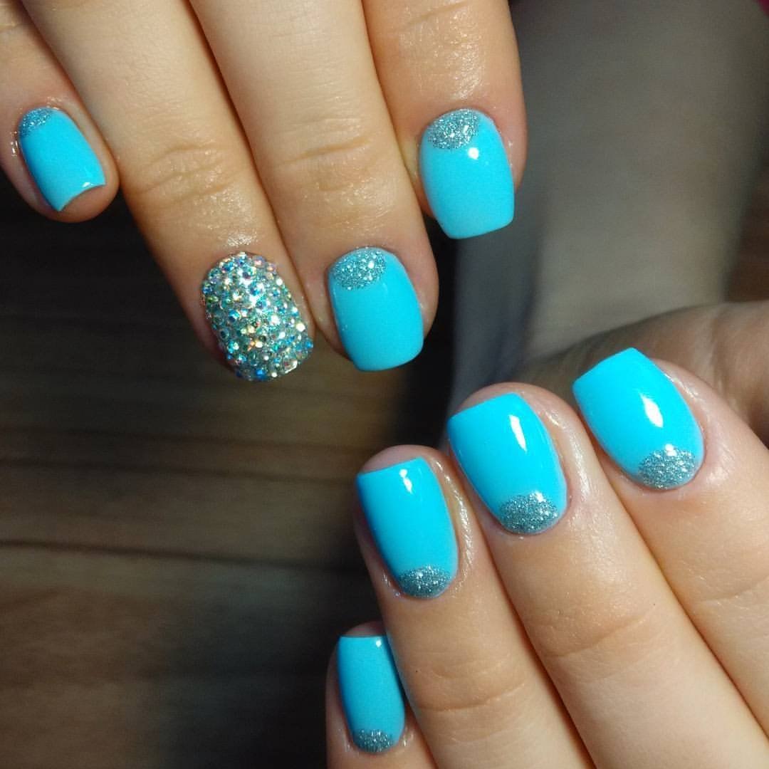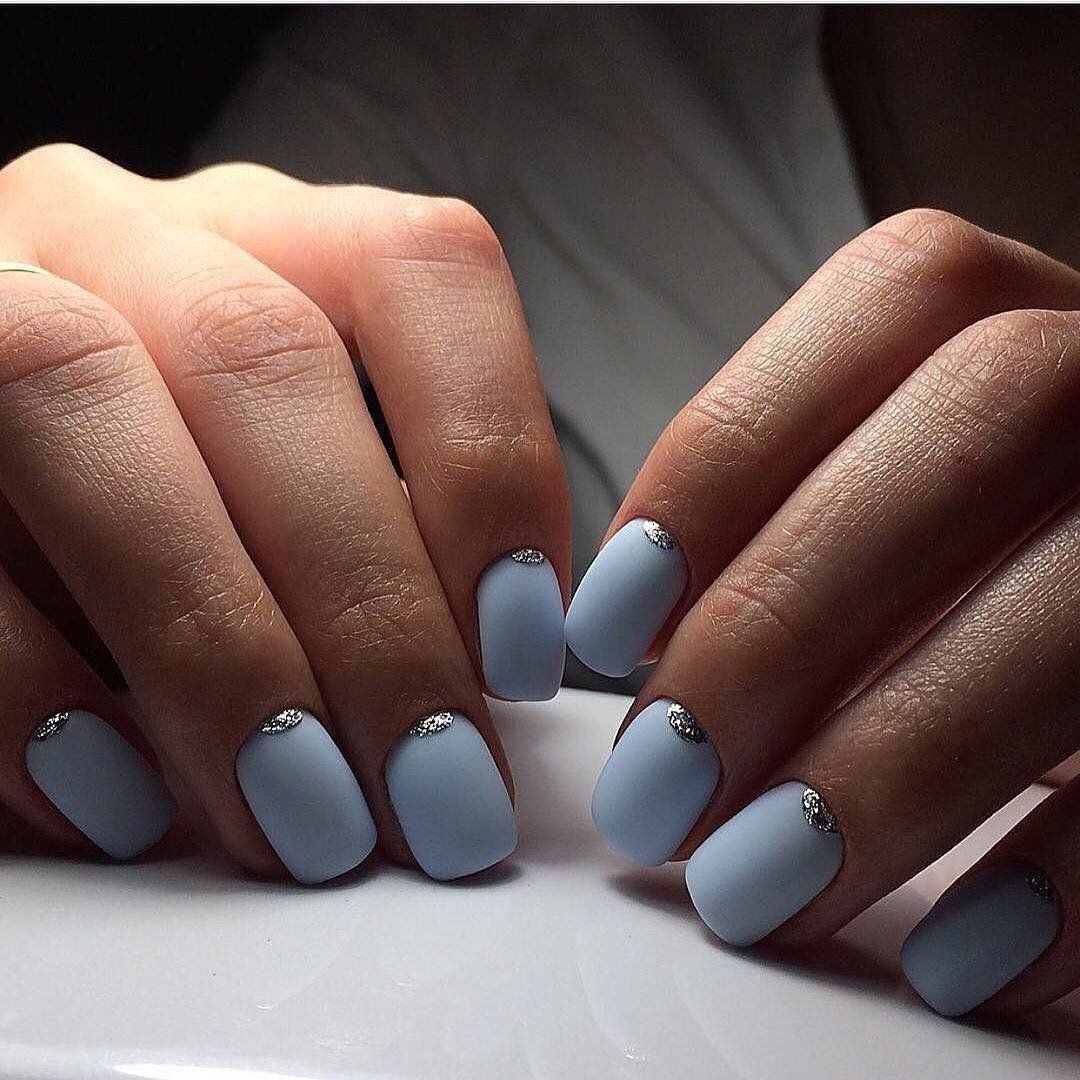 Голубой маникюр на короткие