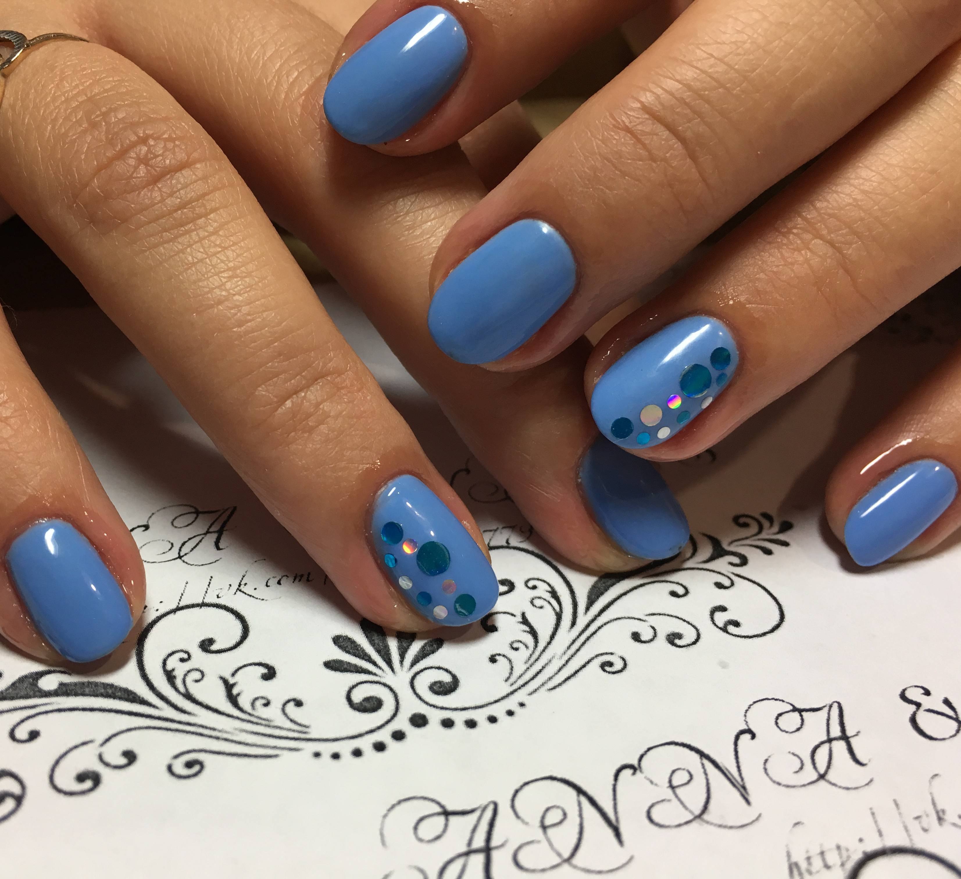 Маникюр шеллак голубой