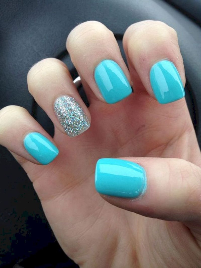 Голубой маникюр на короткие ногти