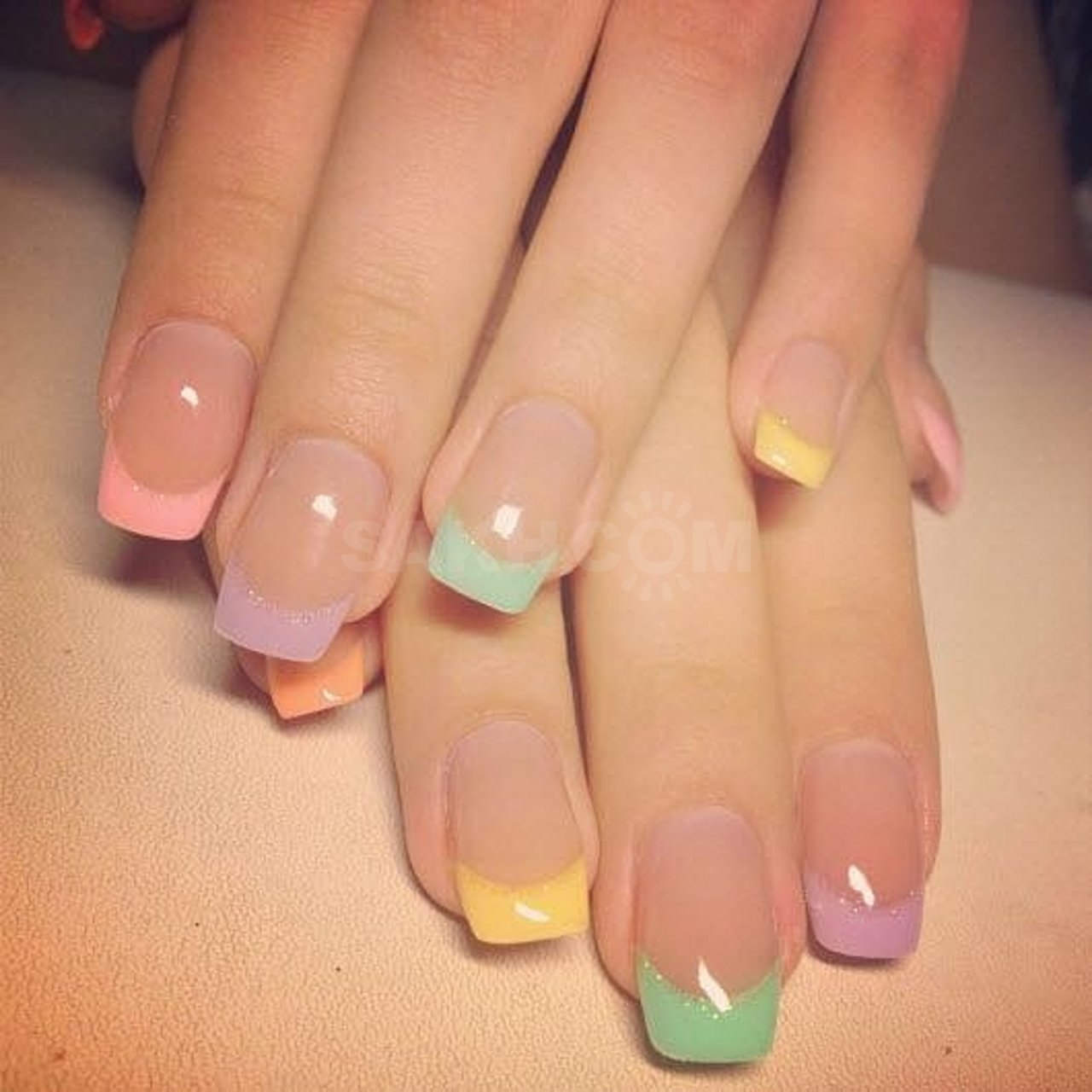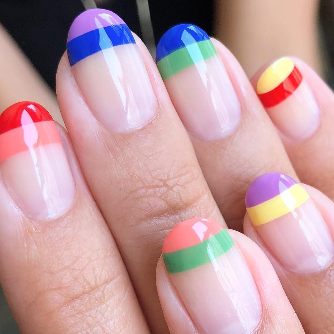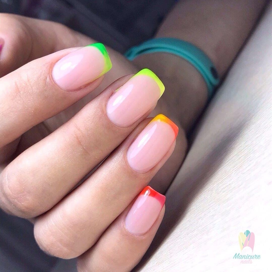 Маникюр с разноцветными кончиками ногтей
