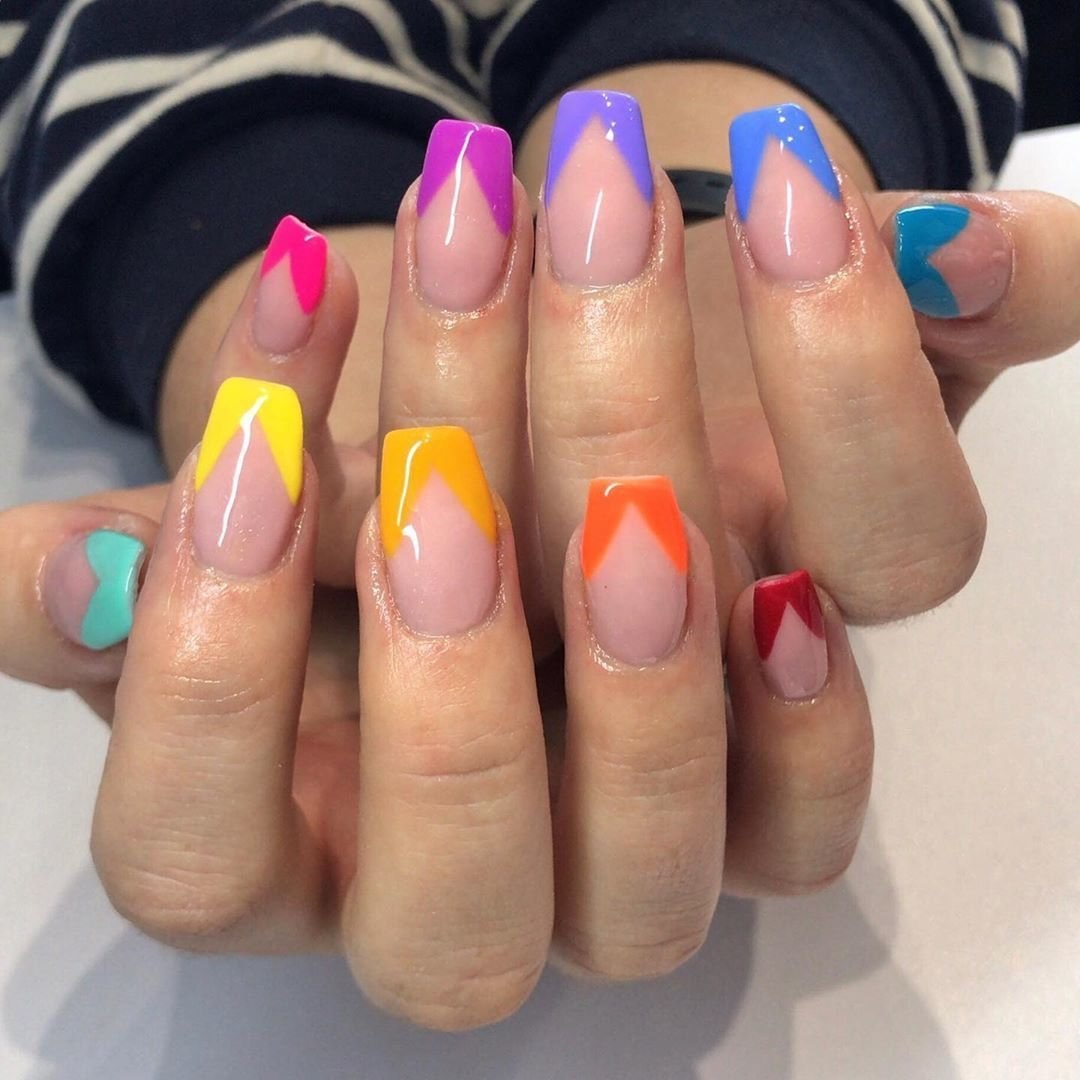 Френч с разноцветными кончиками
