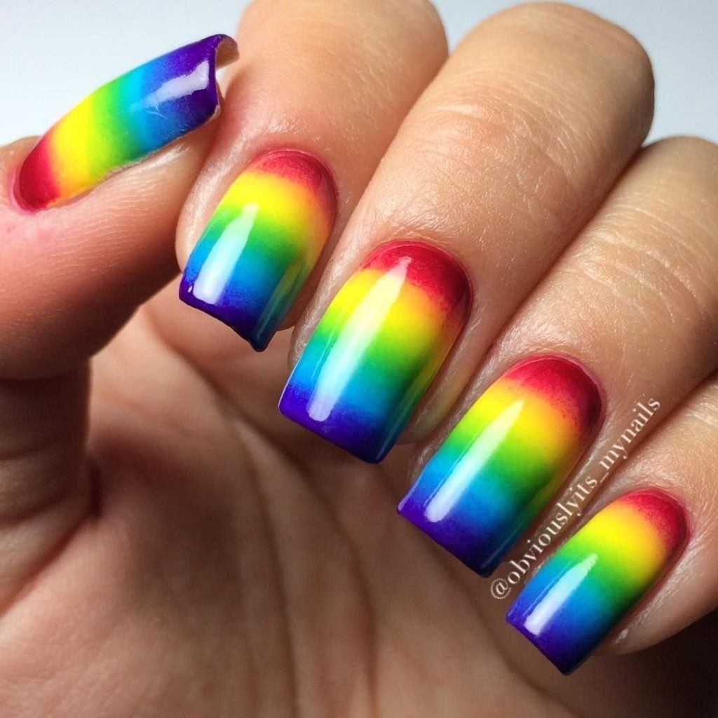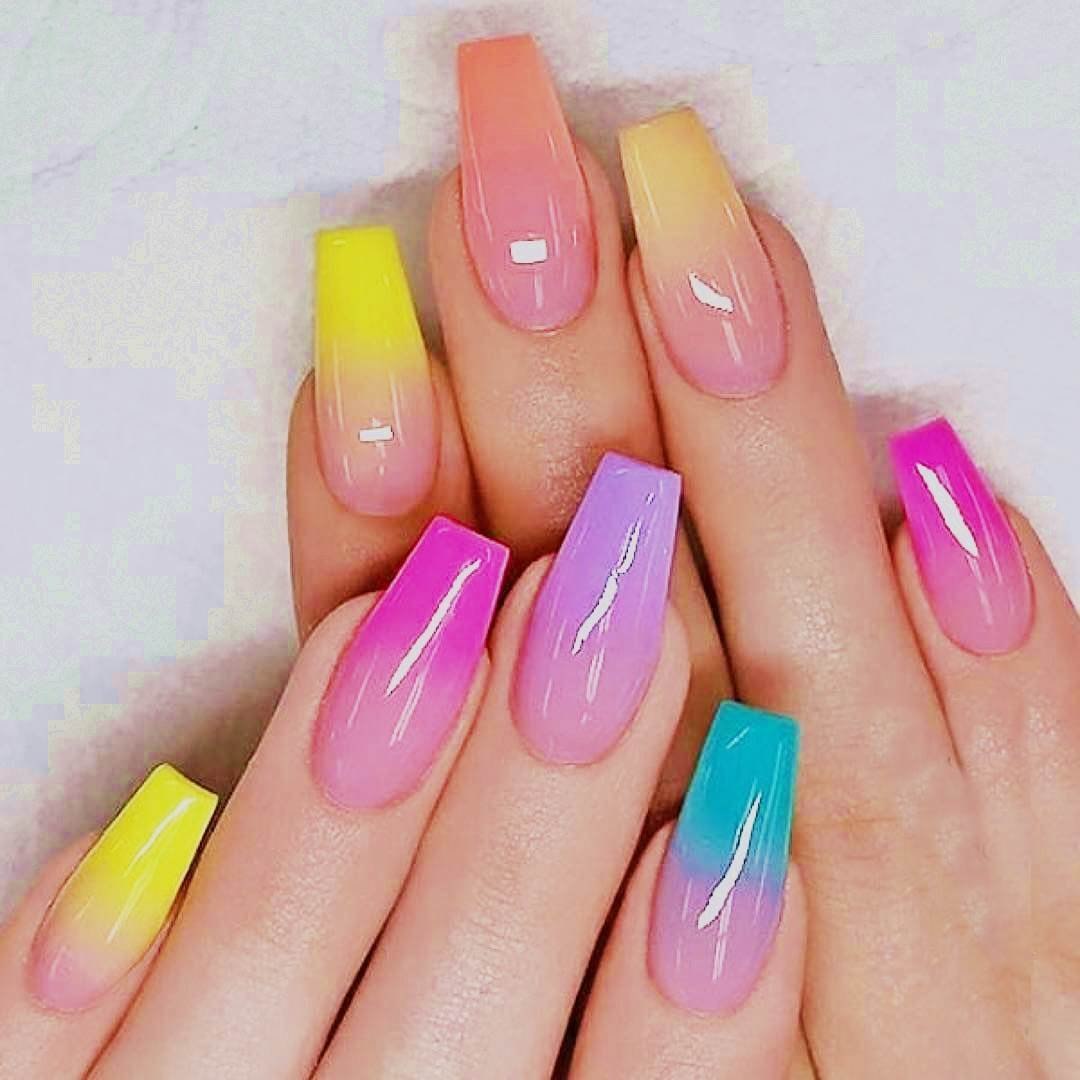 Разноцветное омбре на ногтях