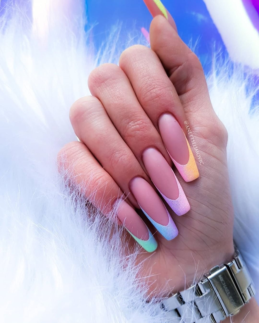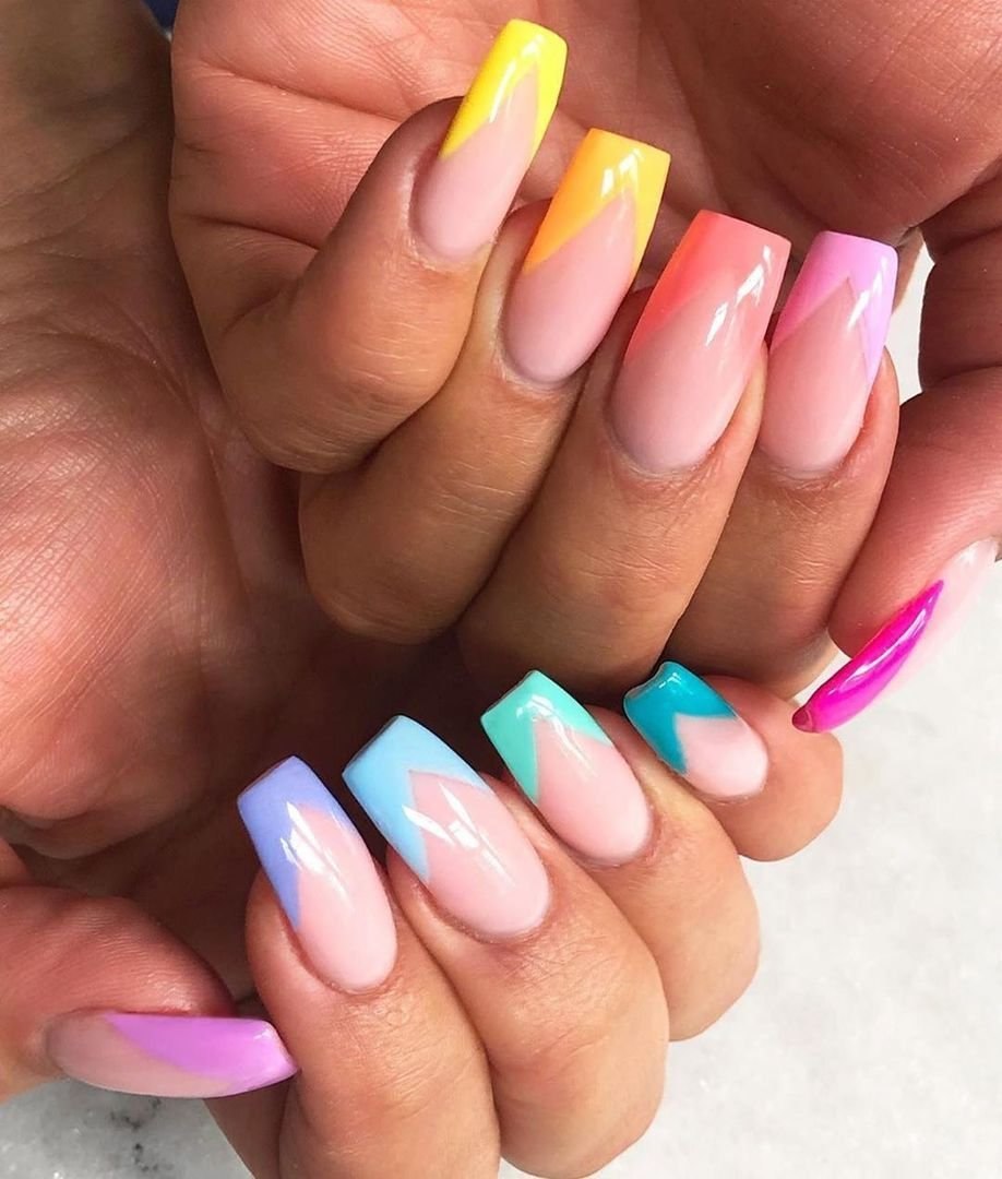 Маникюр с разноцветными кончиками