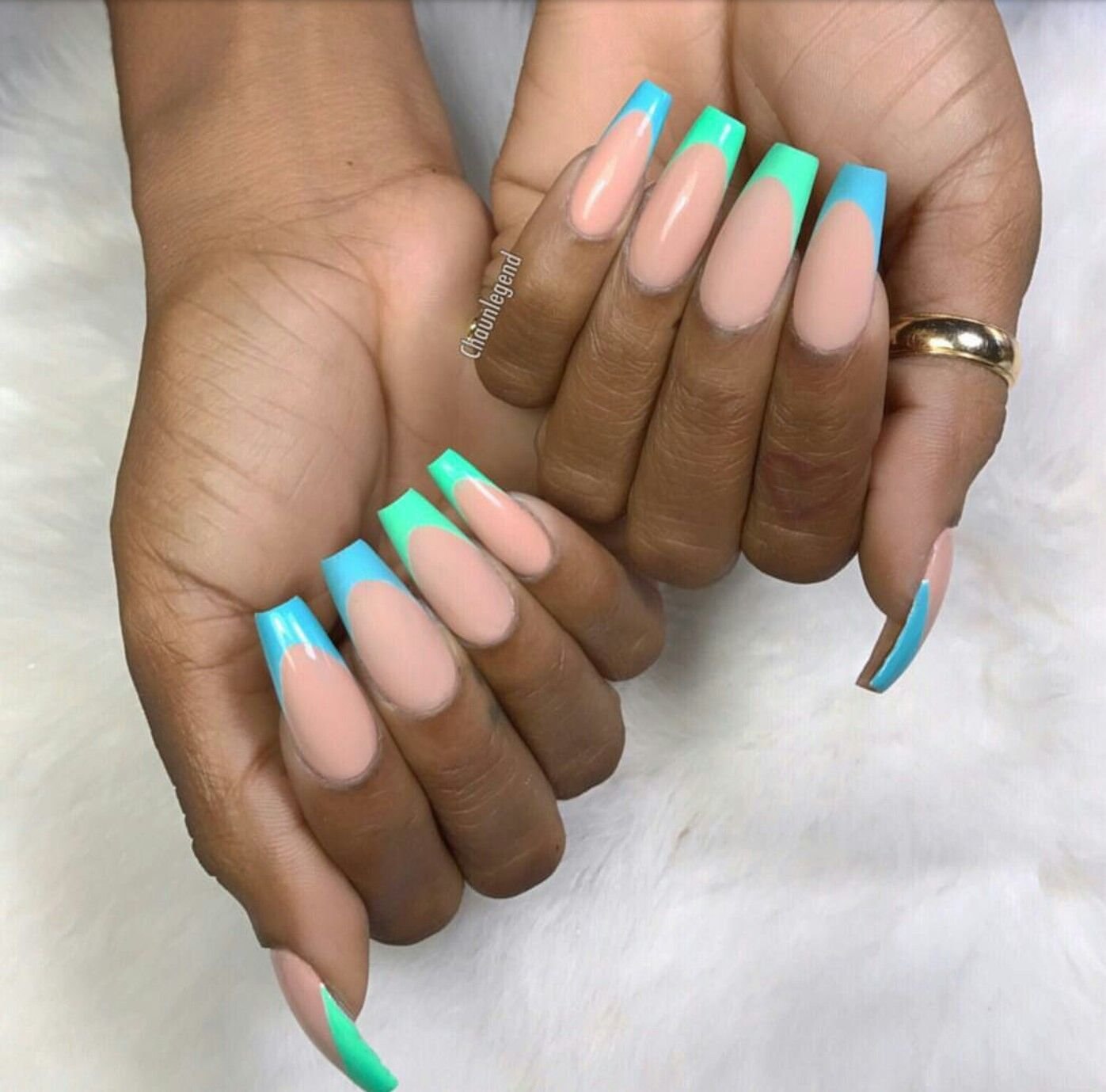 Мятный маникюр на длинные ногти