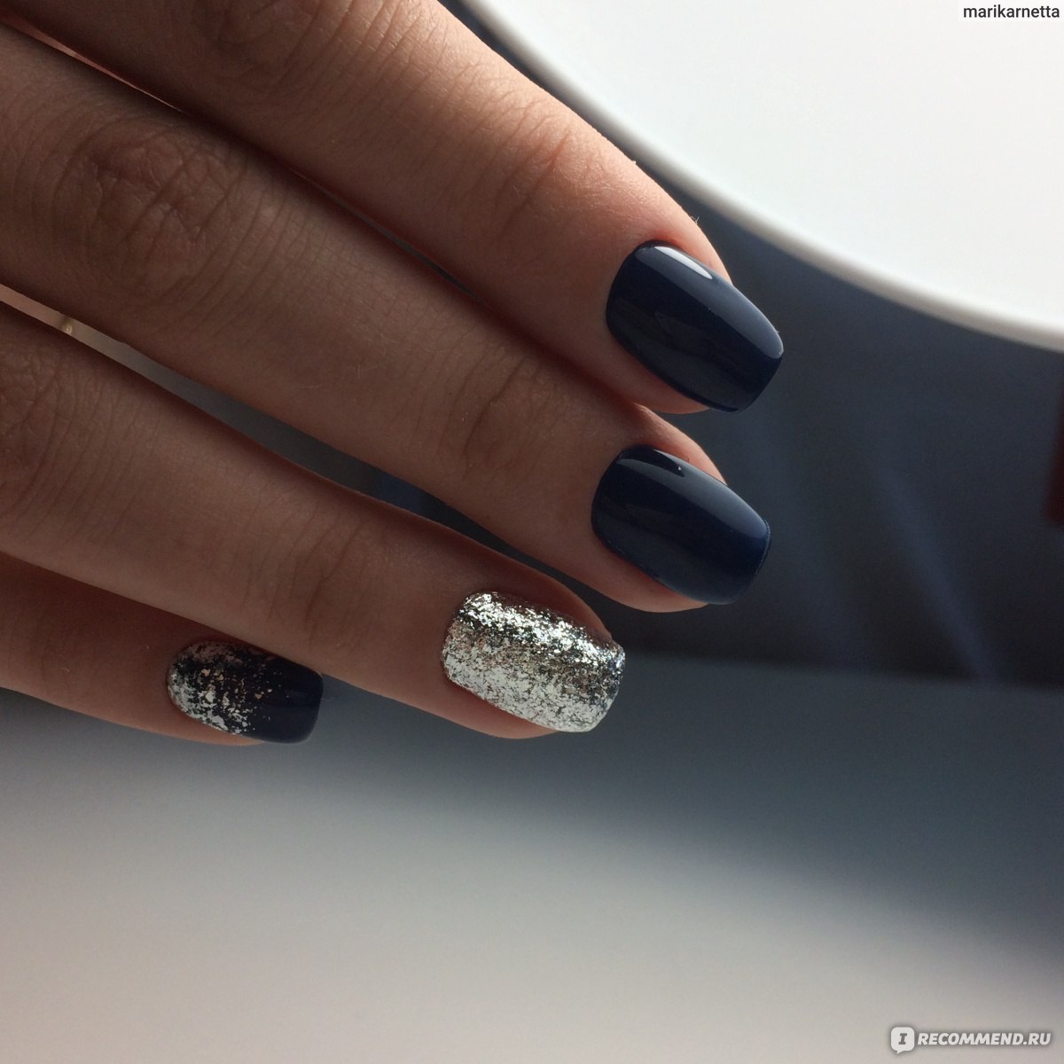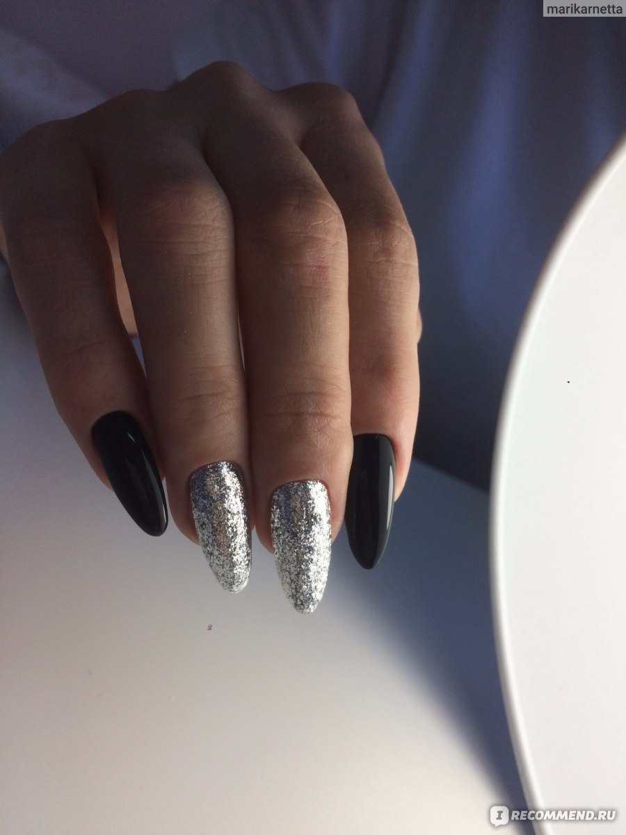 Черный маникюр с серебряной фольгой