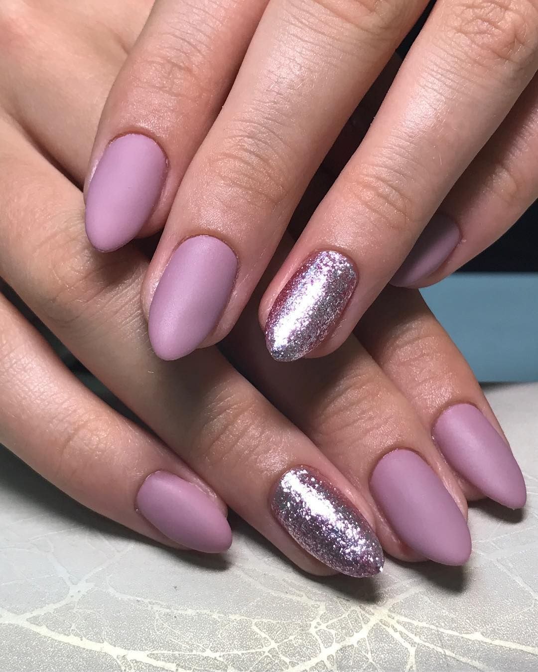 Маникюр розовый с серебром