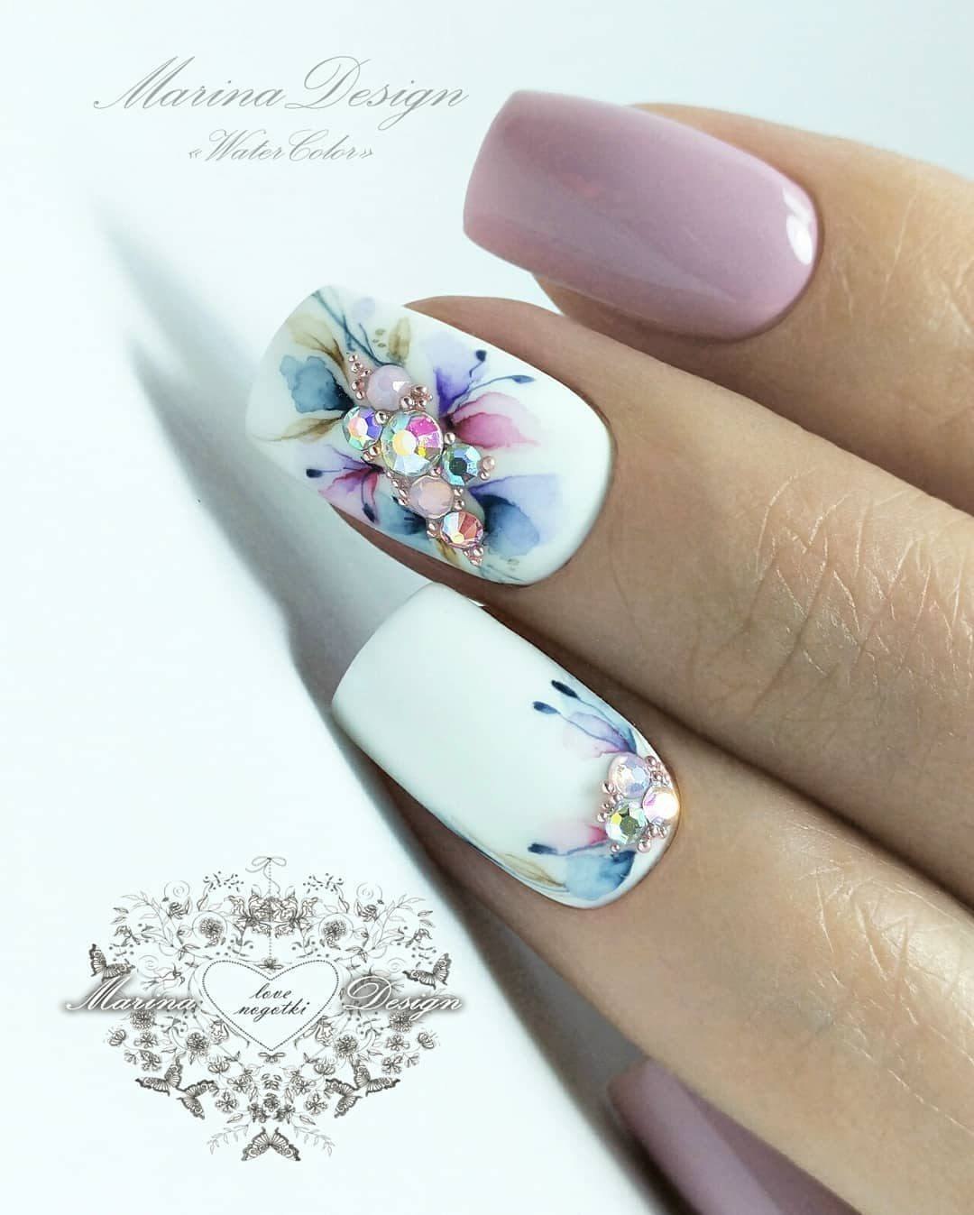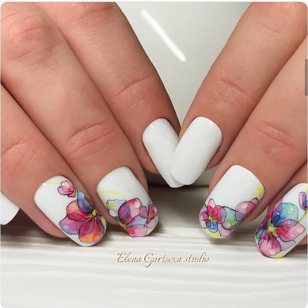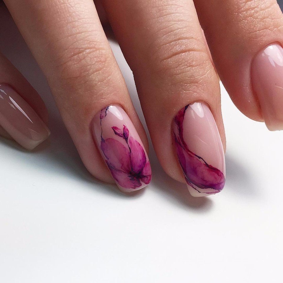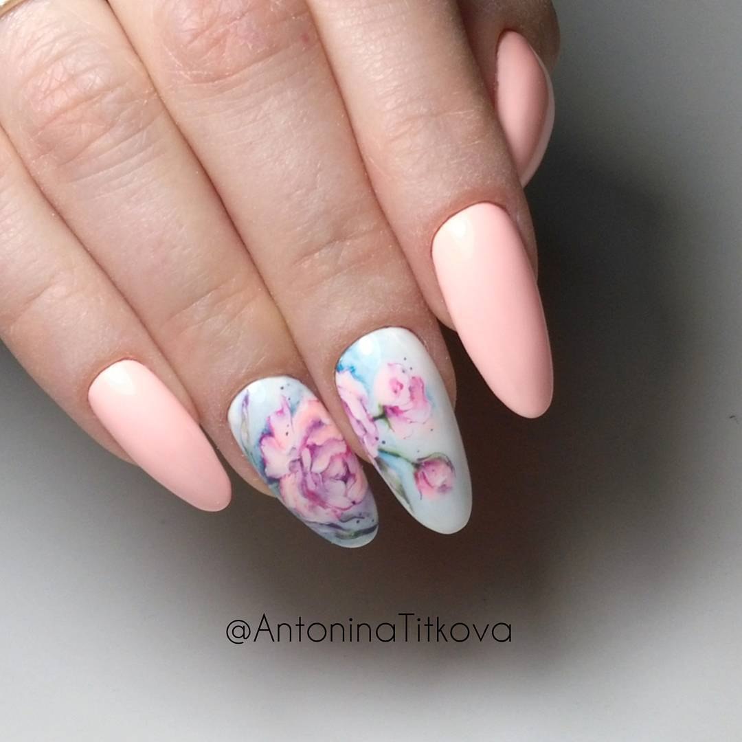 Маникюр с акварельными цветами
