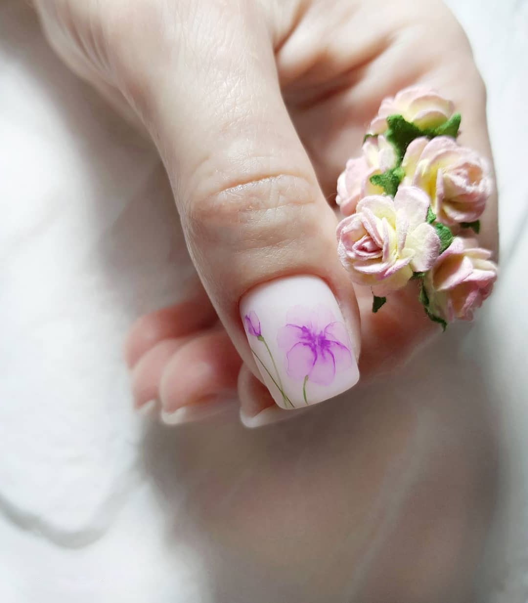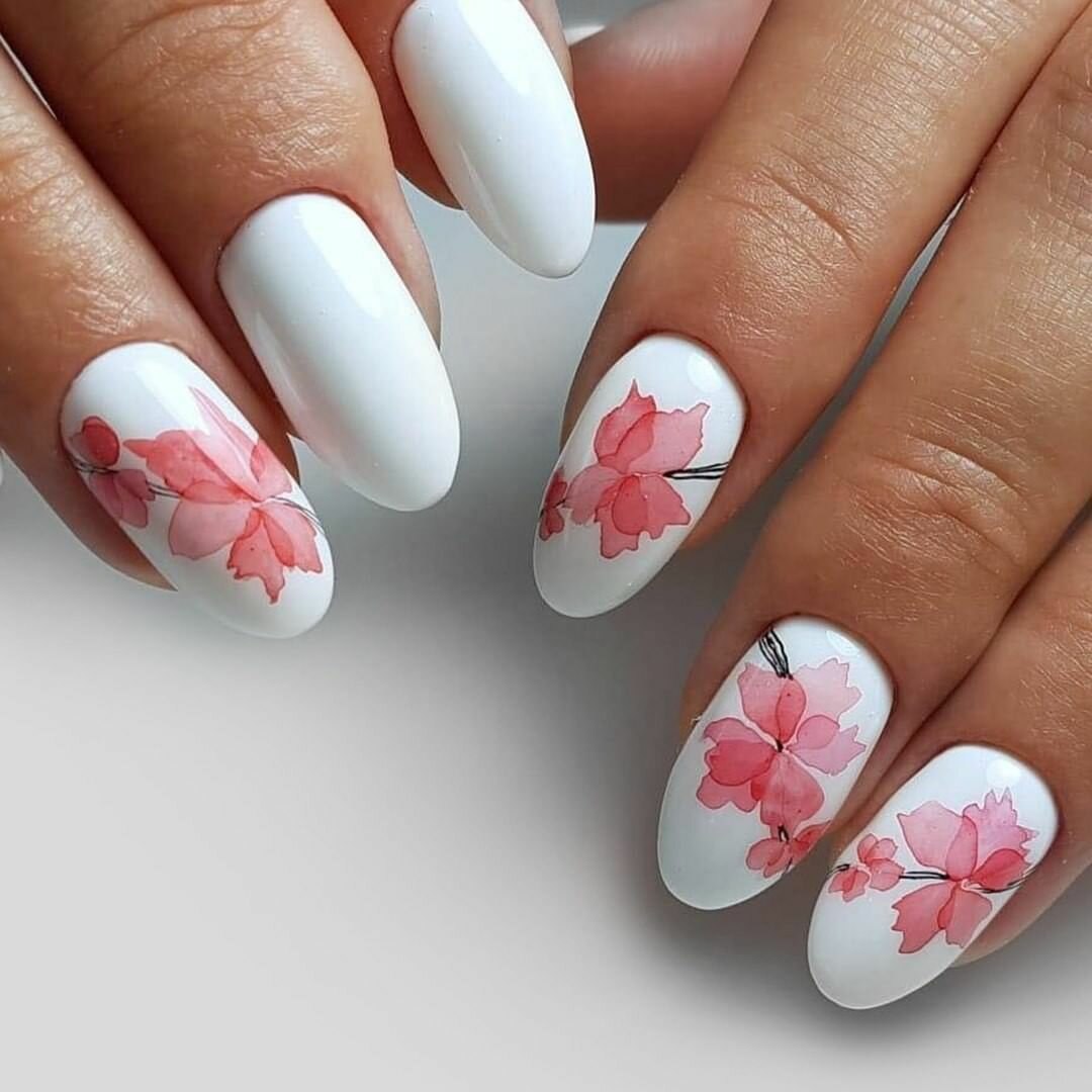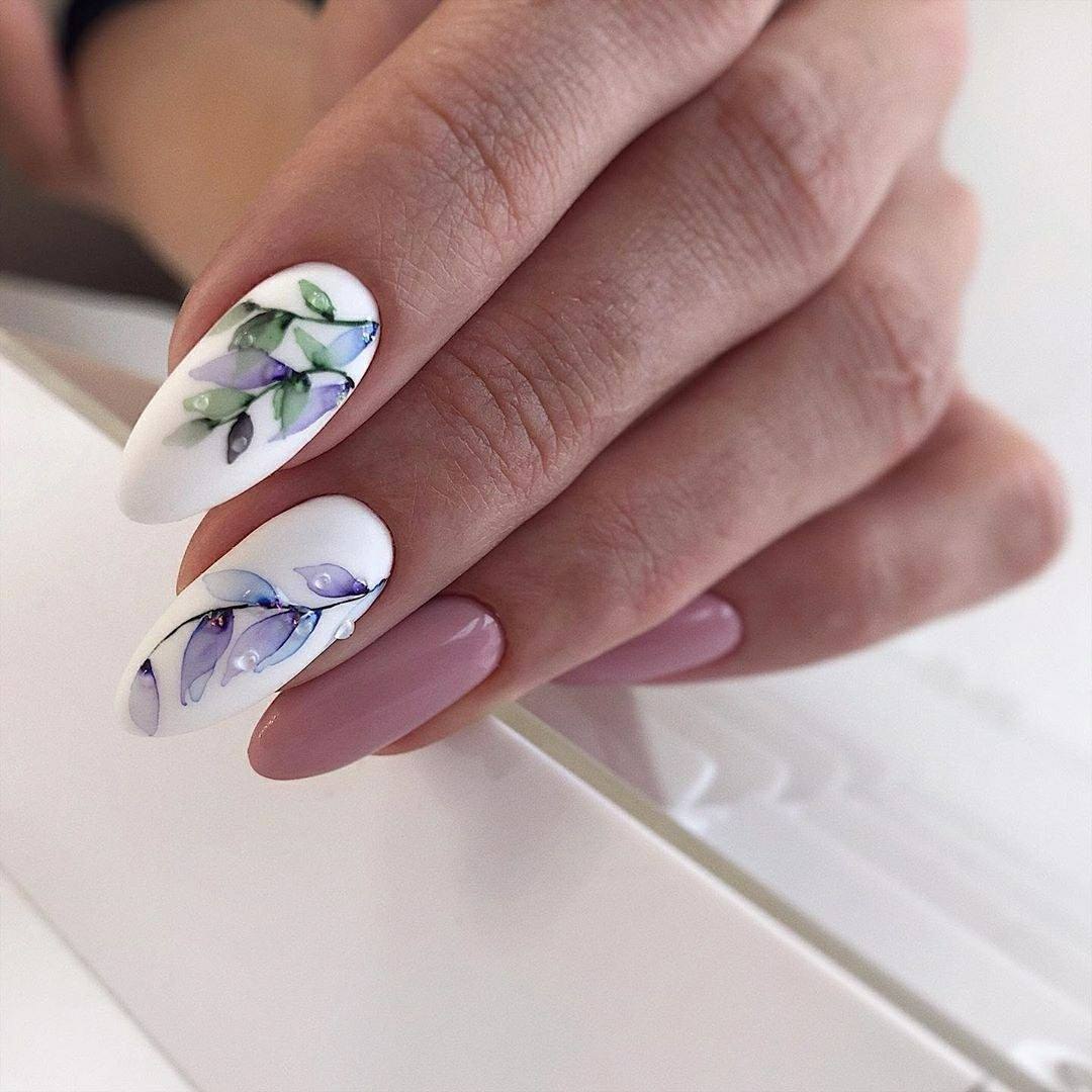 Маникюр с акварельными цветами
