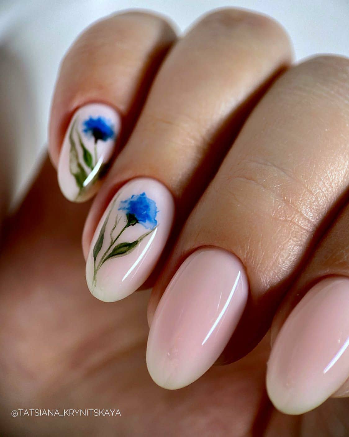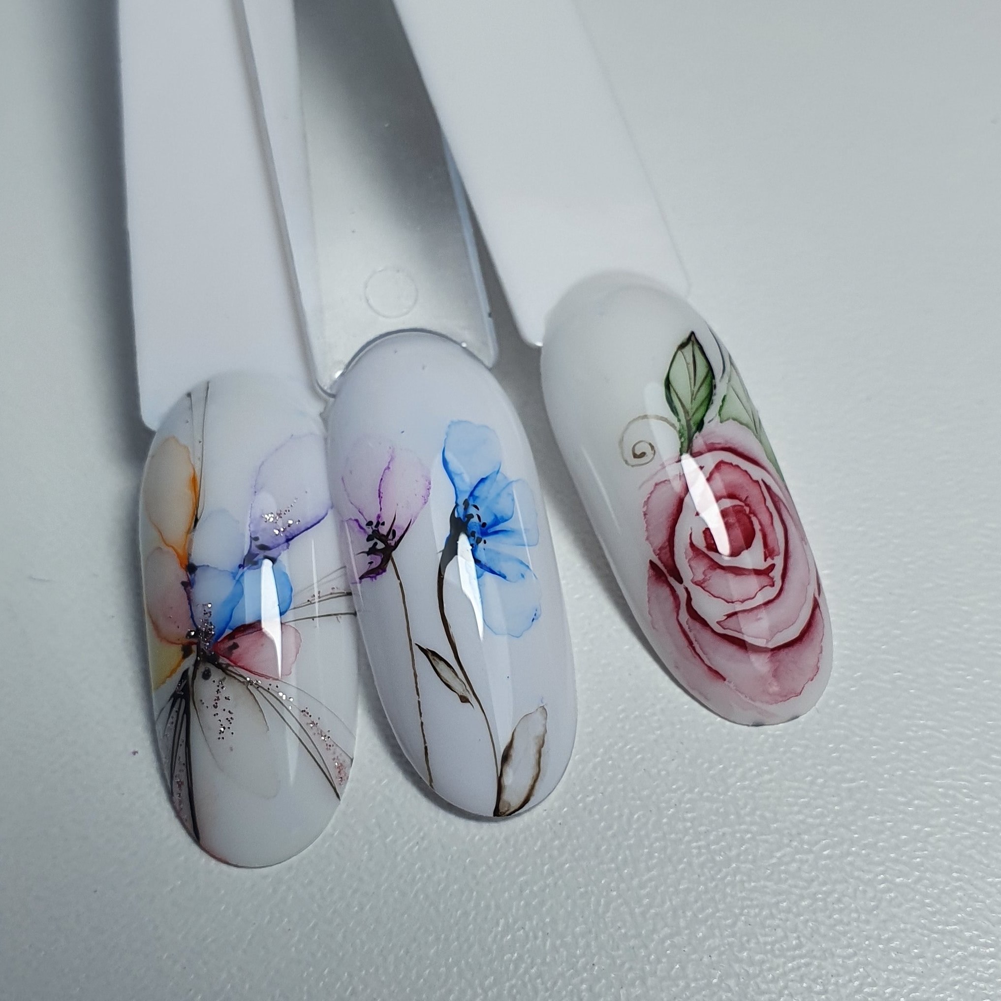 Акварельные цветы на ногтях