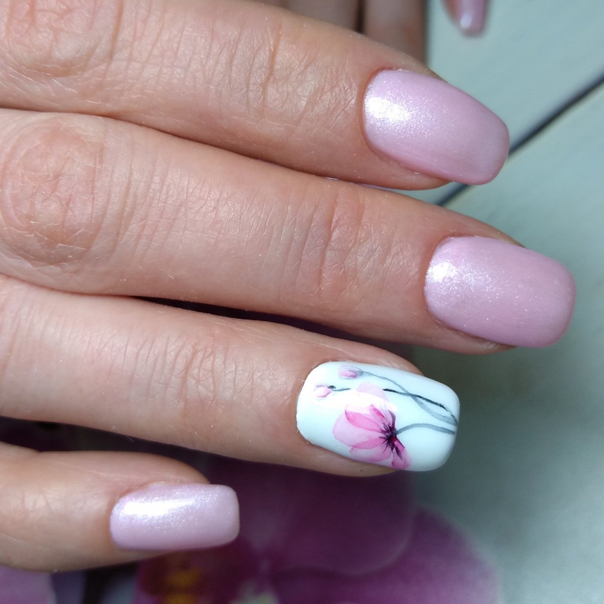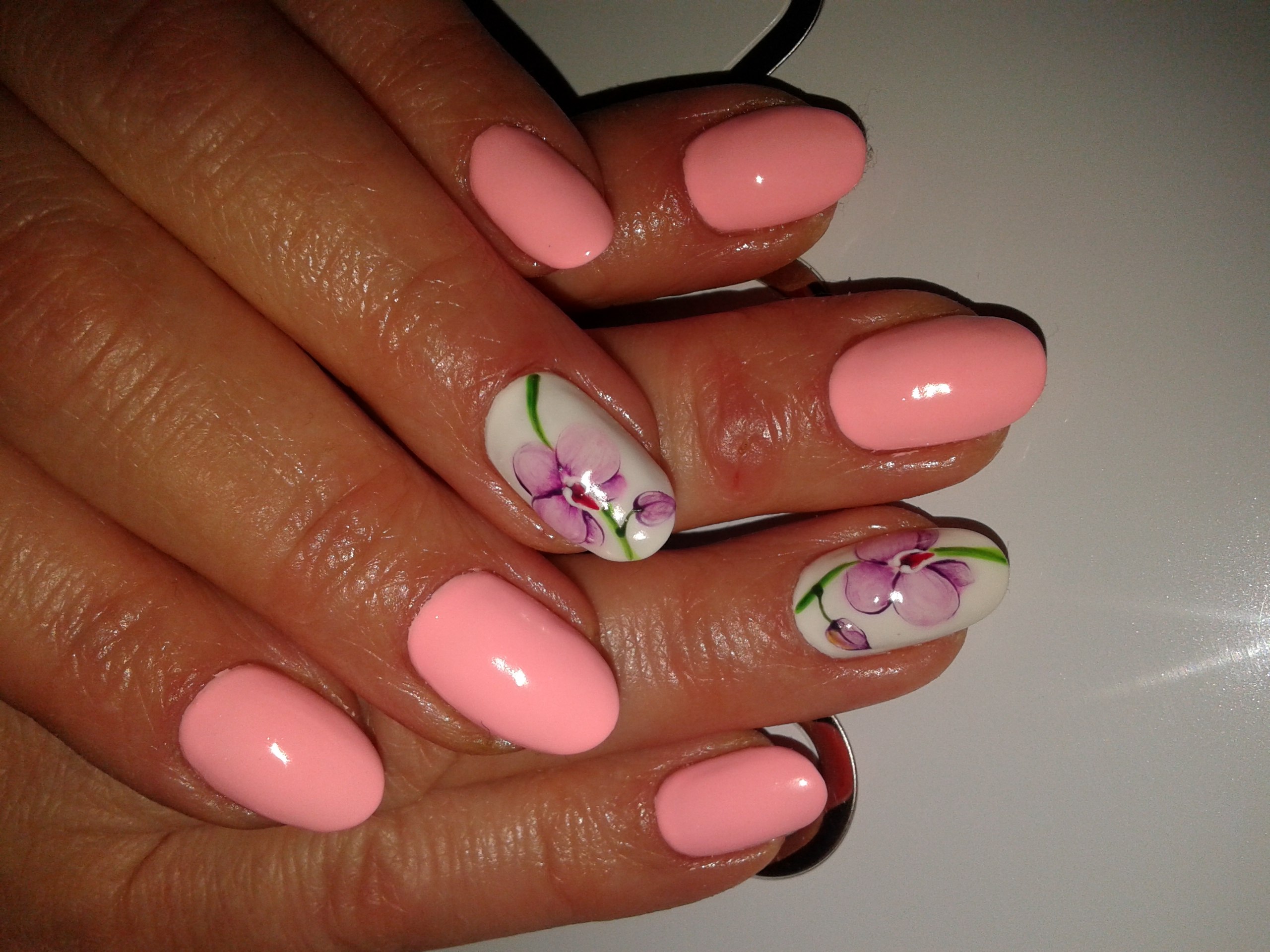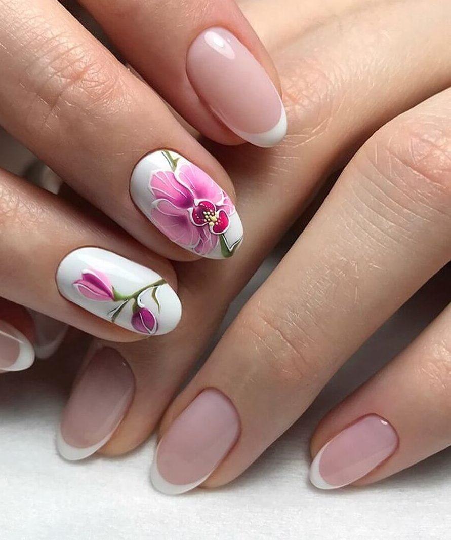 Маникюр с орхидеями на ногтях