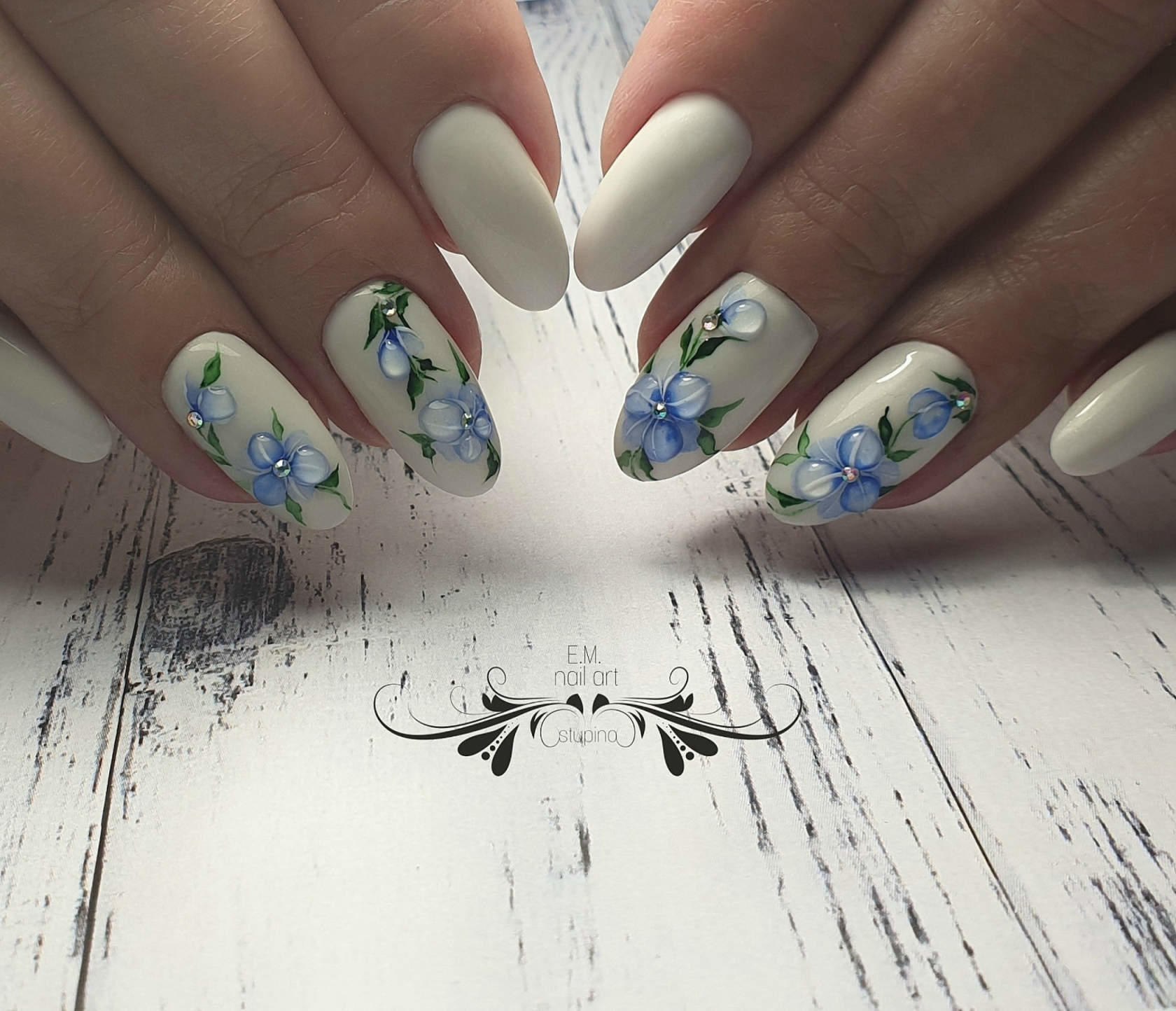 Белый маникюр с акварелью
