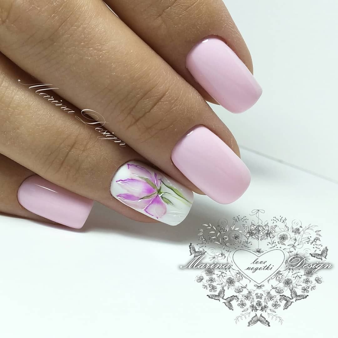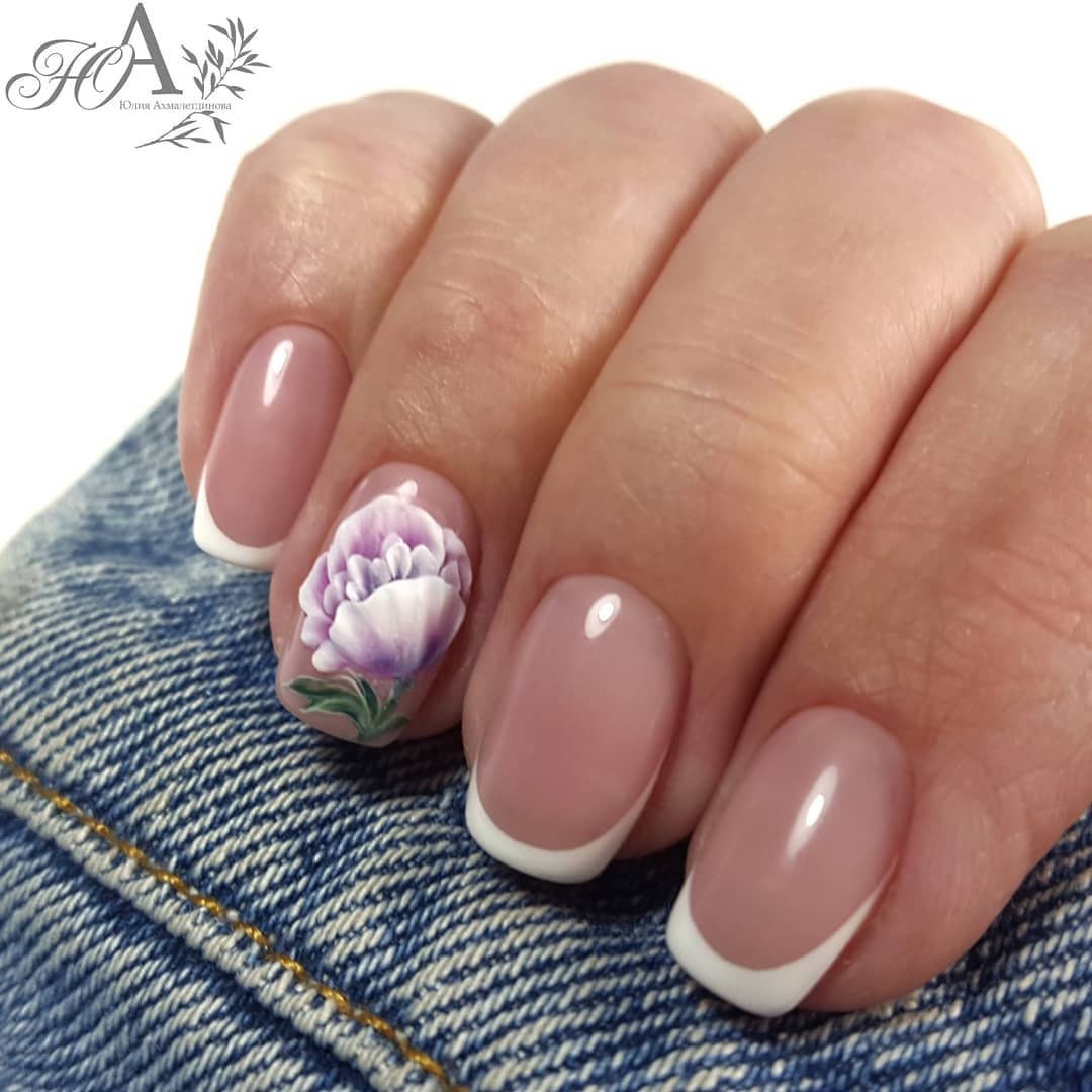 Маникюр нюд с цветами