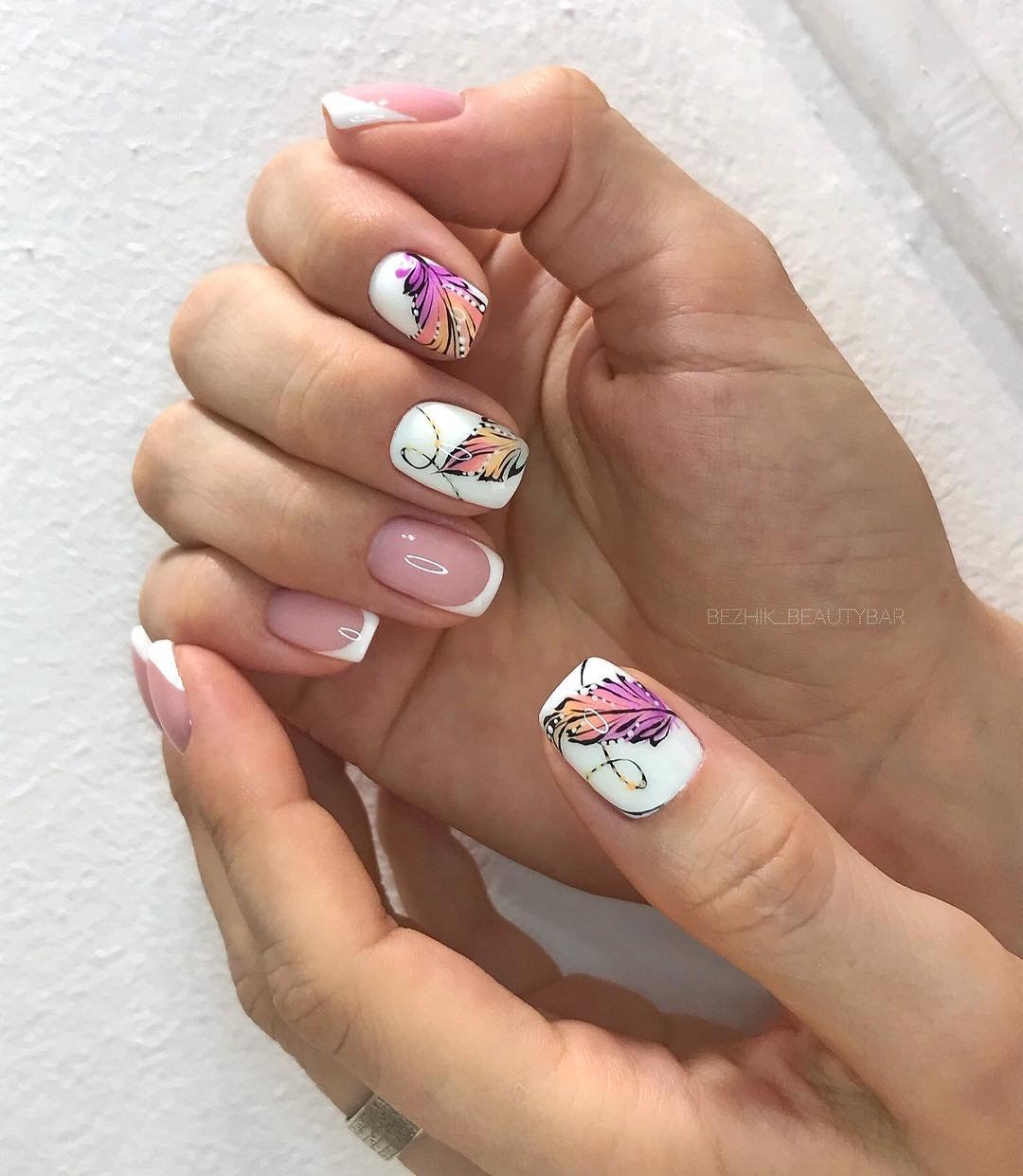 Маникюр с цветочками и бабочками