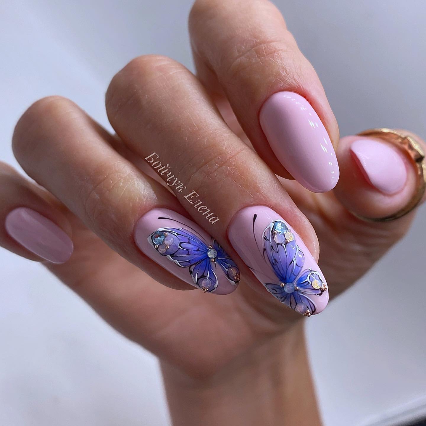 Маникюр лето 2020 с бабочками