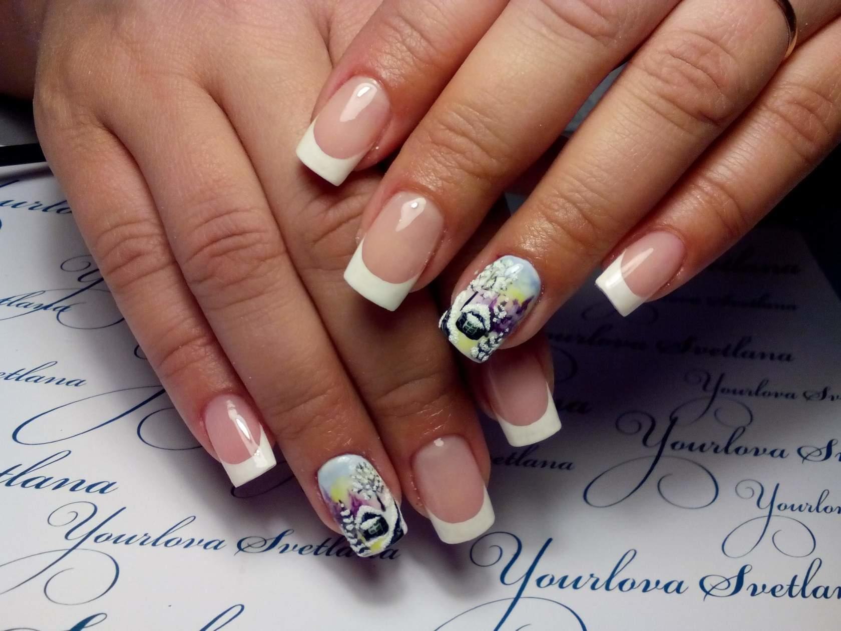 Французский маникюр с акварелью