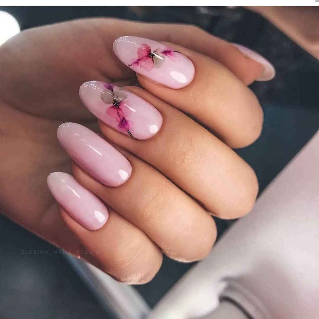 Розовый маникюр с акварелью