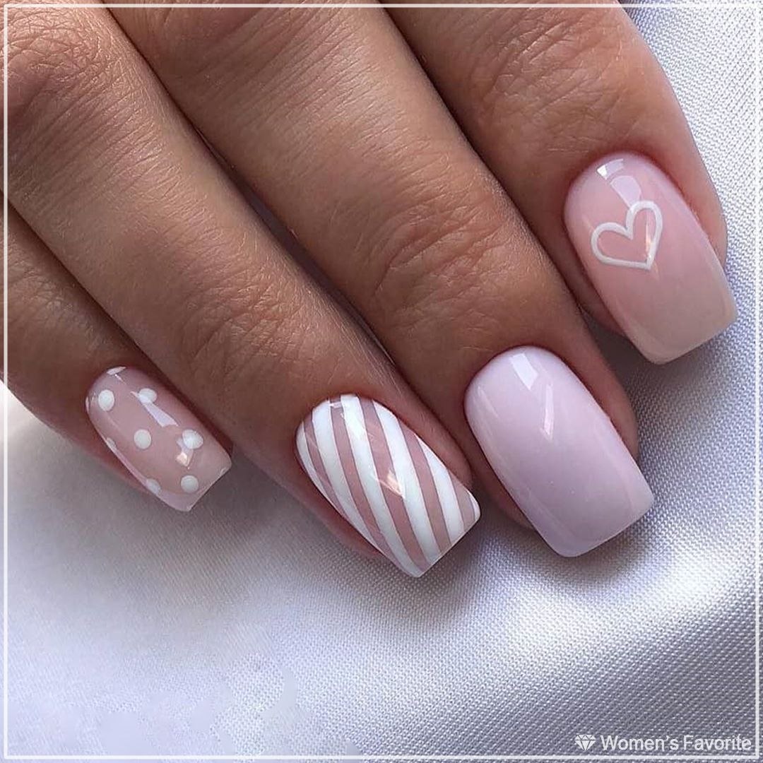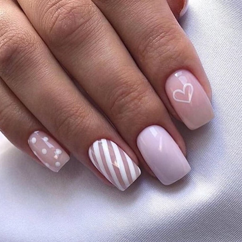 Маникюр розовый с белыми полосками
