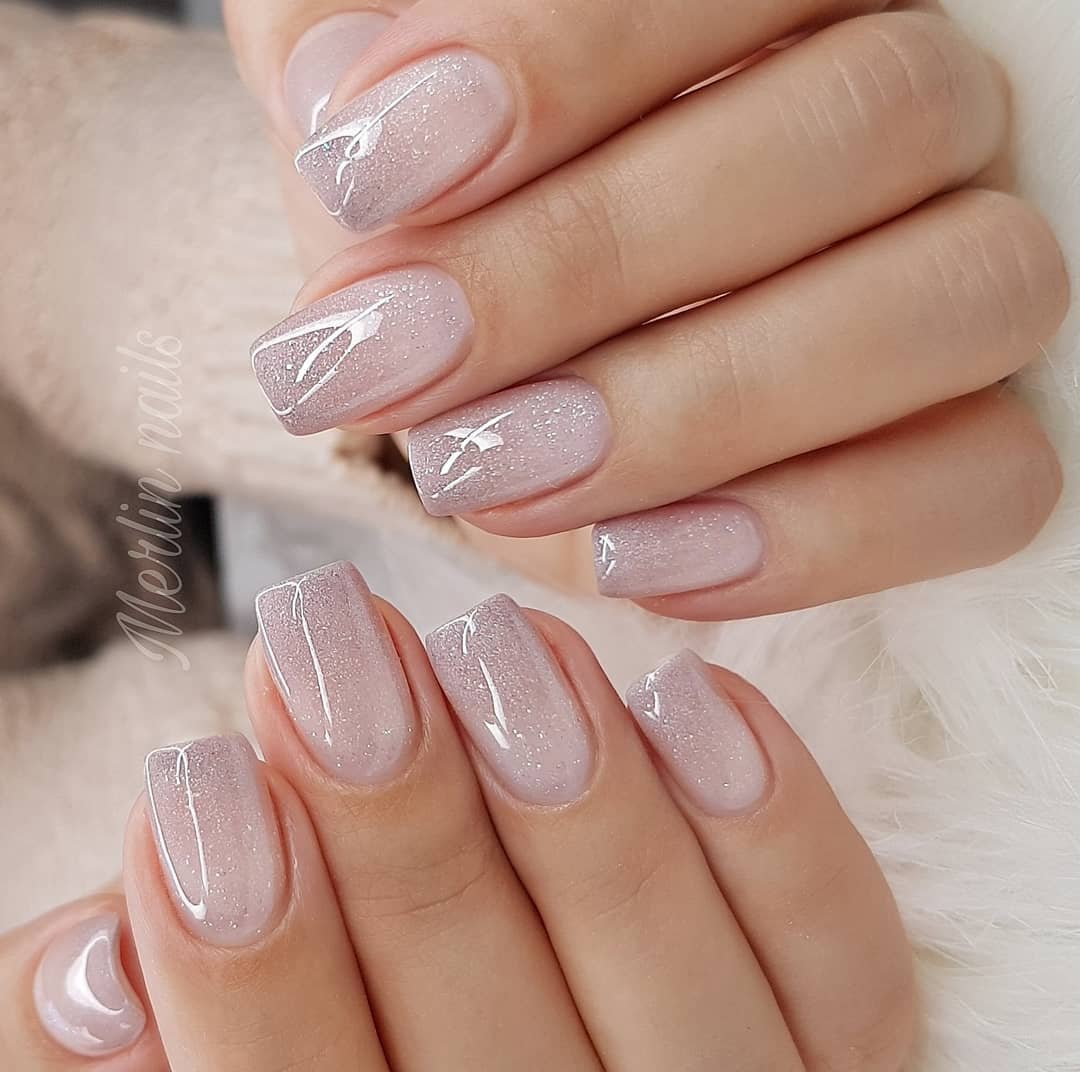 Нюдовый мраморный маникюр 2020