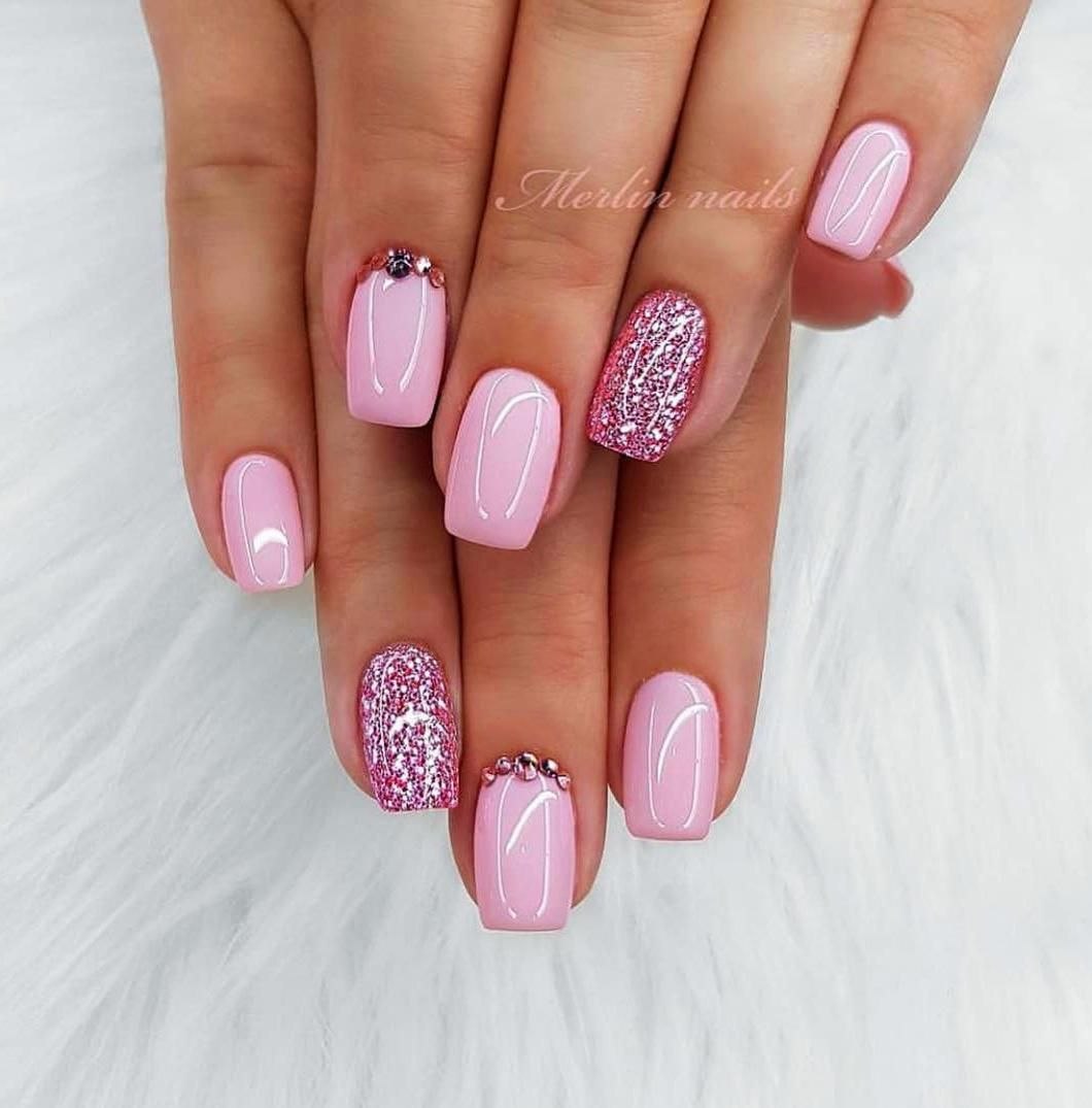 Розовый маникюр на короткие ногти